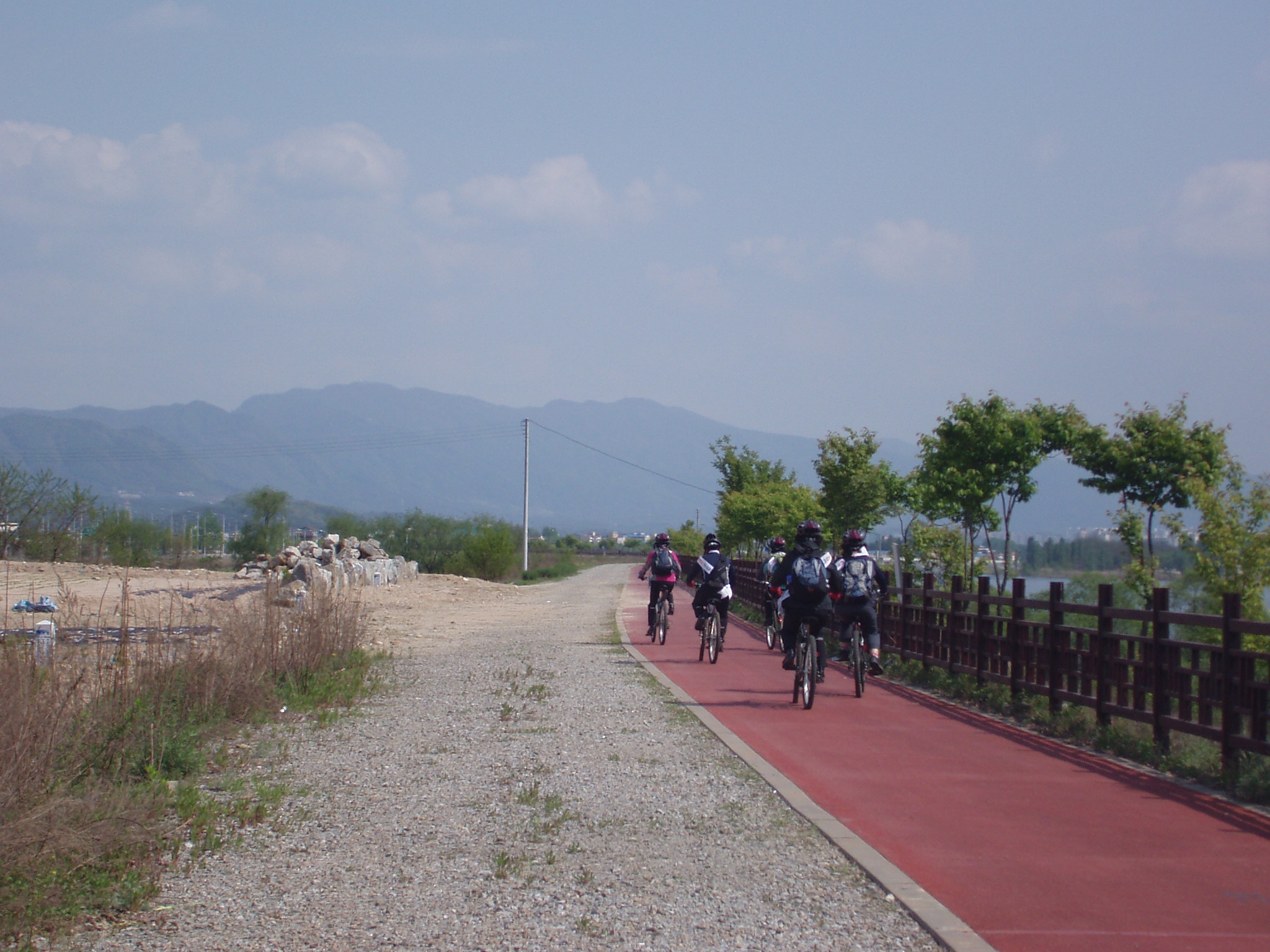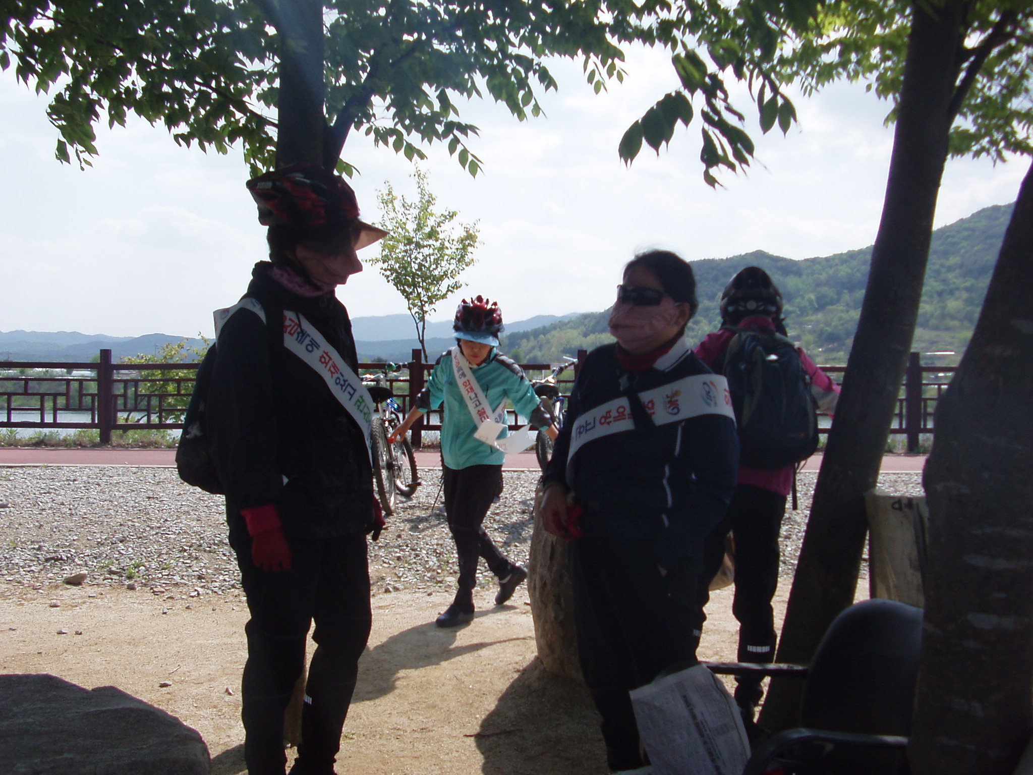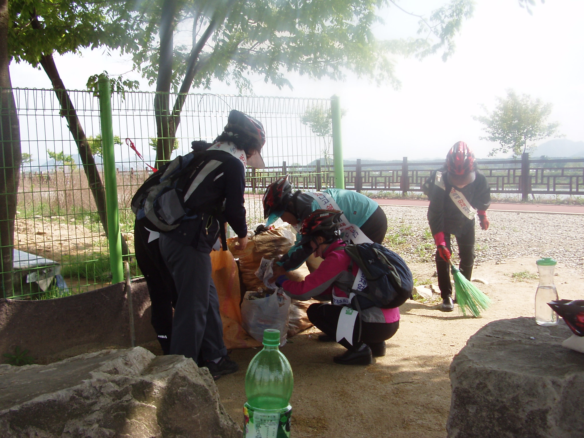 춘천여성의용소방대 자전거소방홍보단원들이 자전거도로를 다니면서 대청소를 하고 있습니다. 칭찬해 주세요