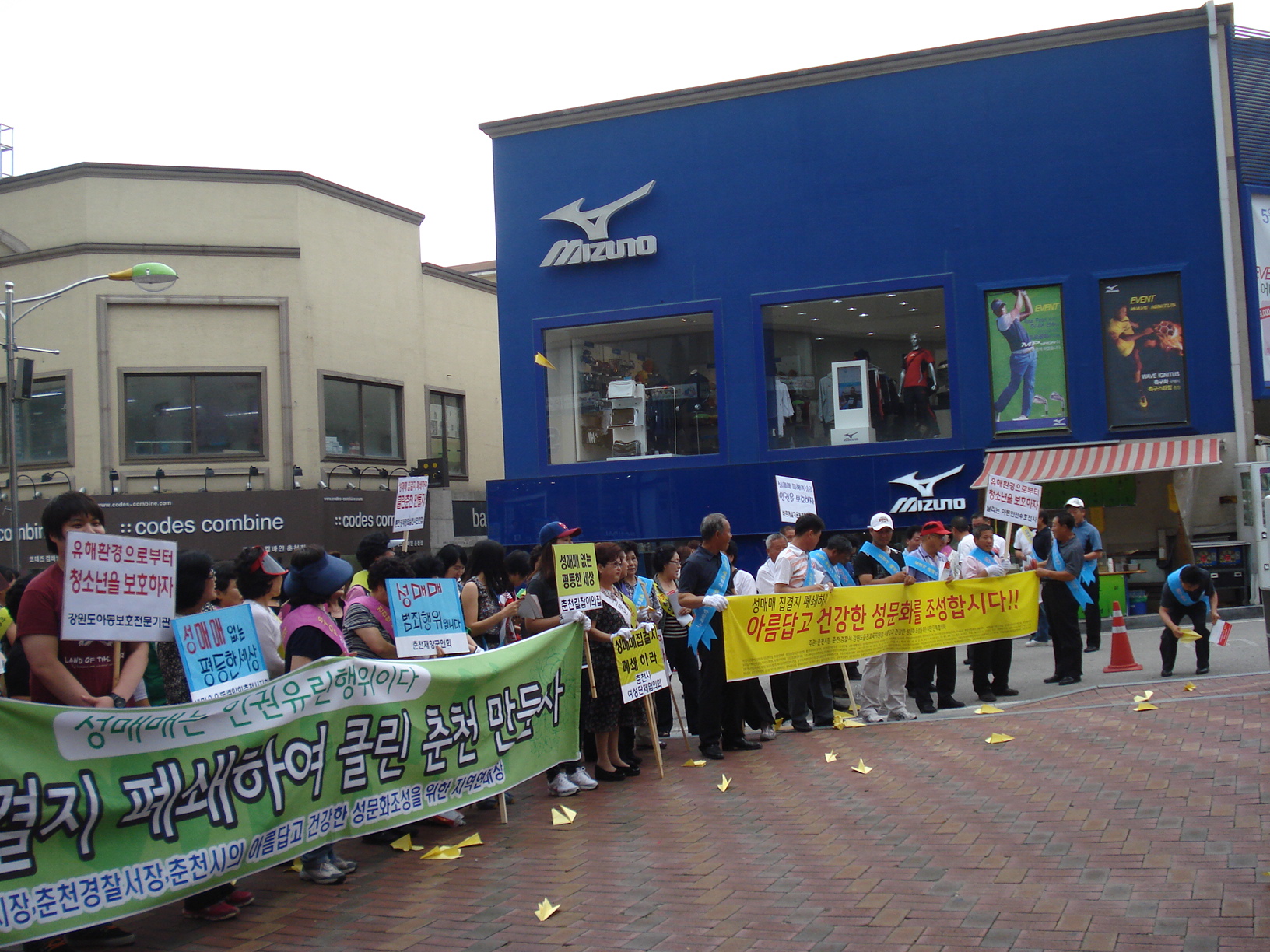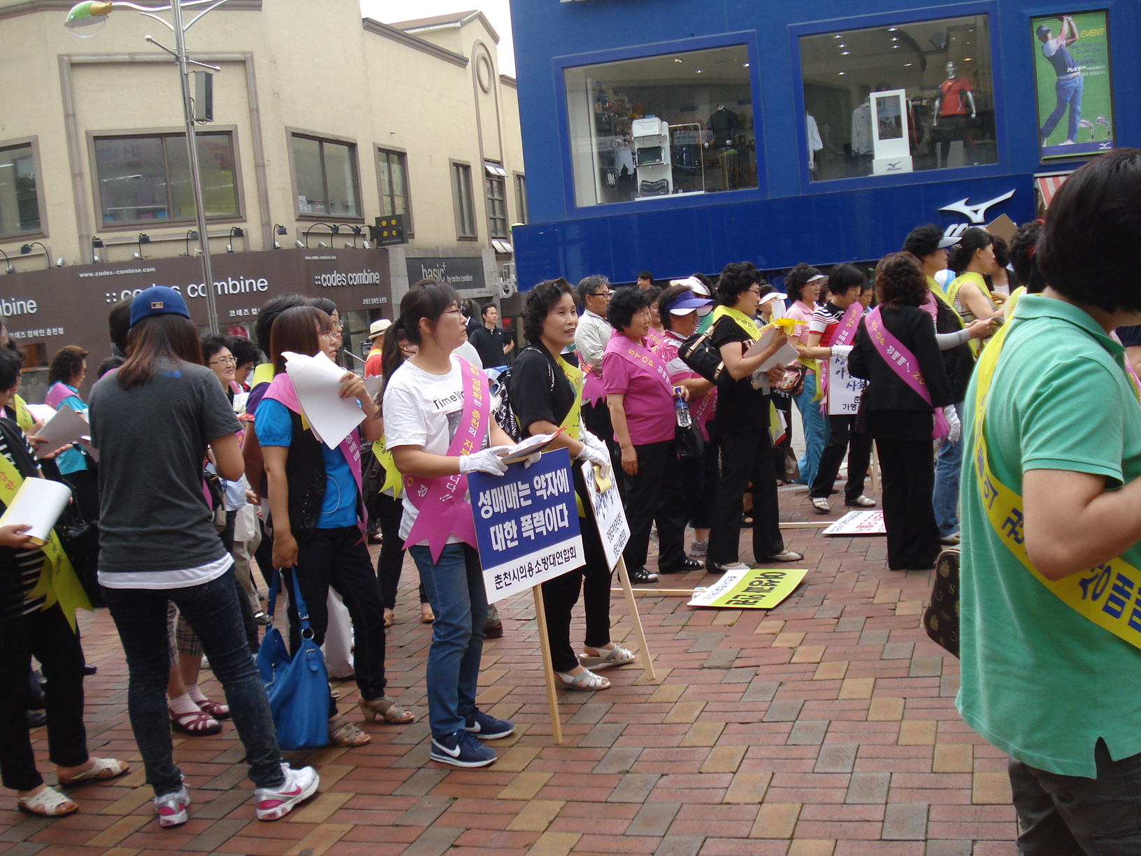 지난 7월 9일에 춘천시 관내 기관및 사회단체 회원들이 춘천브라운 5번가에서 성매매 근절 캠페인에 여성의용소방대도 참석하여 캠페인에 동참했습니다