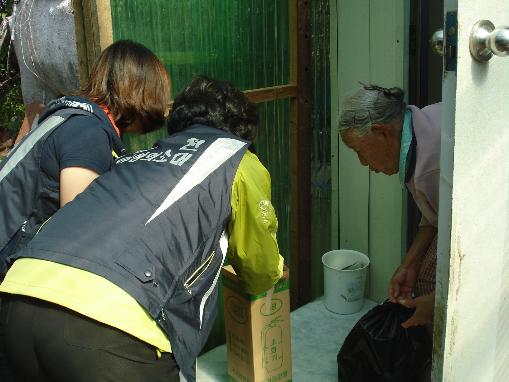 10월5일 월드비젼 도시락배달을 하면서 소화기 전달하며 사용법도 알려드렸습니다.