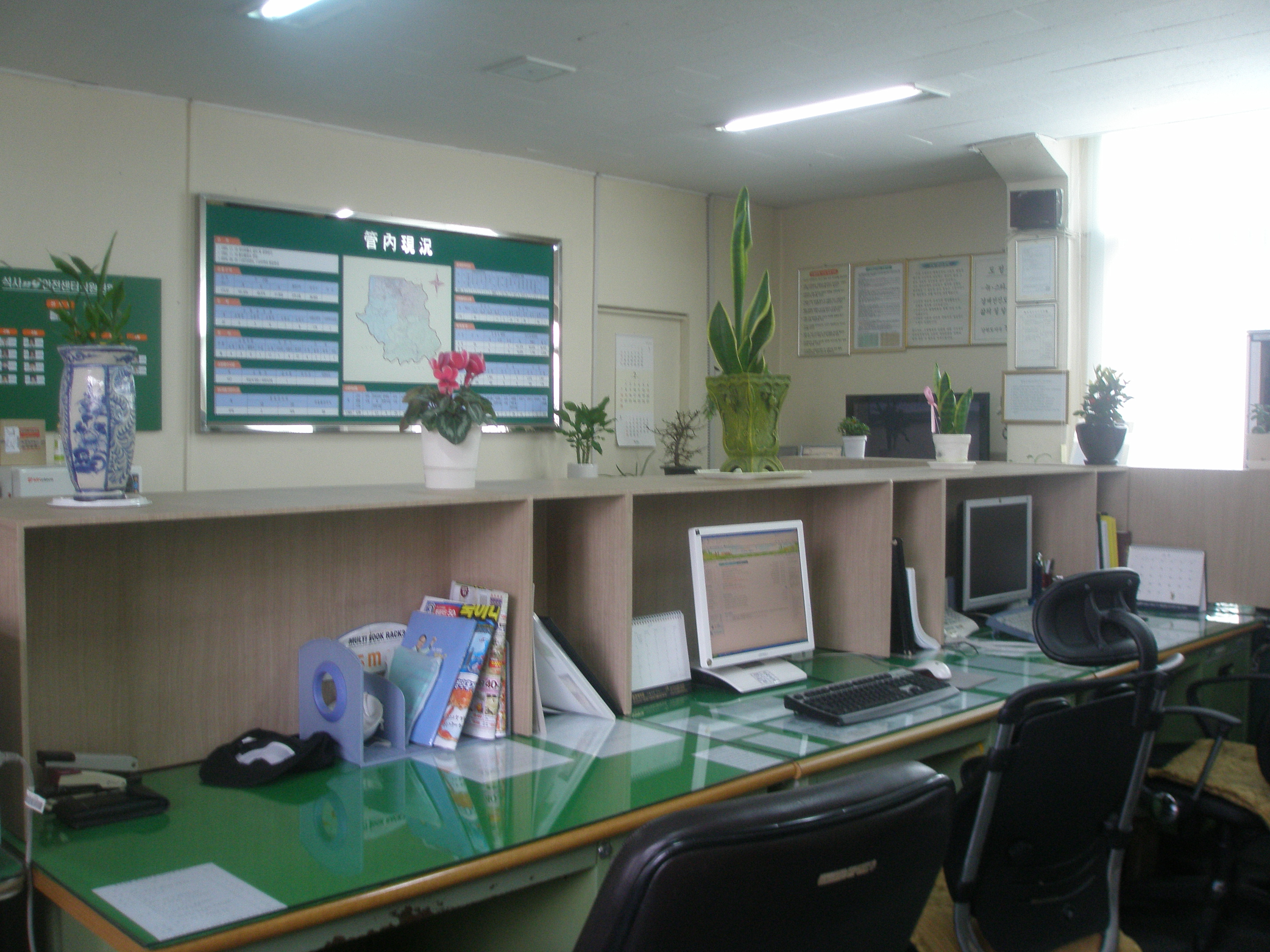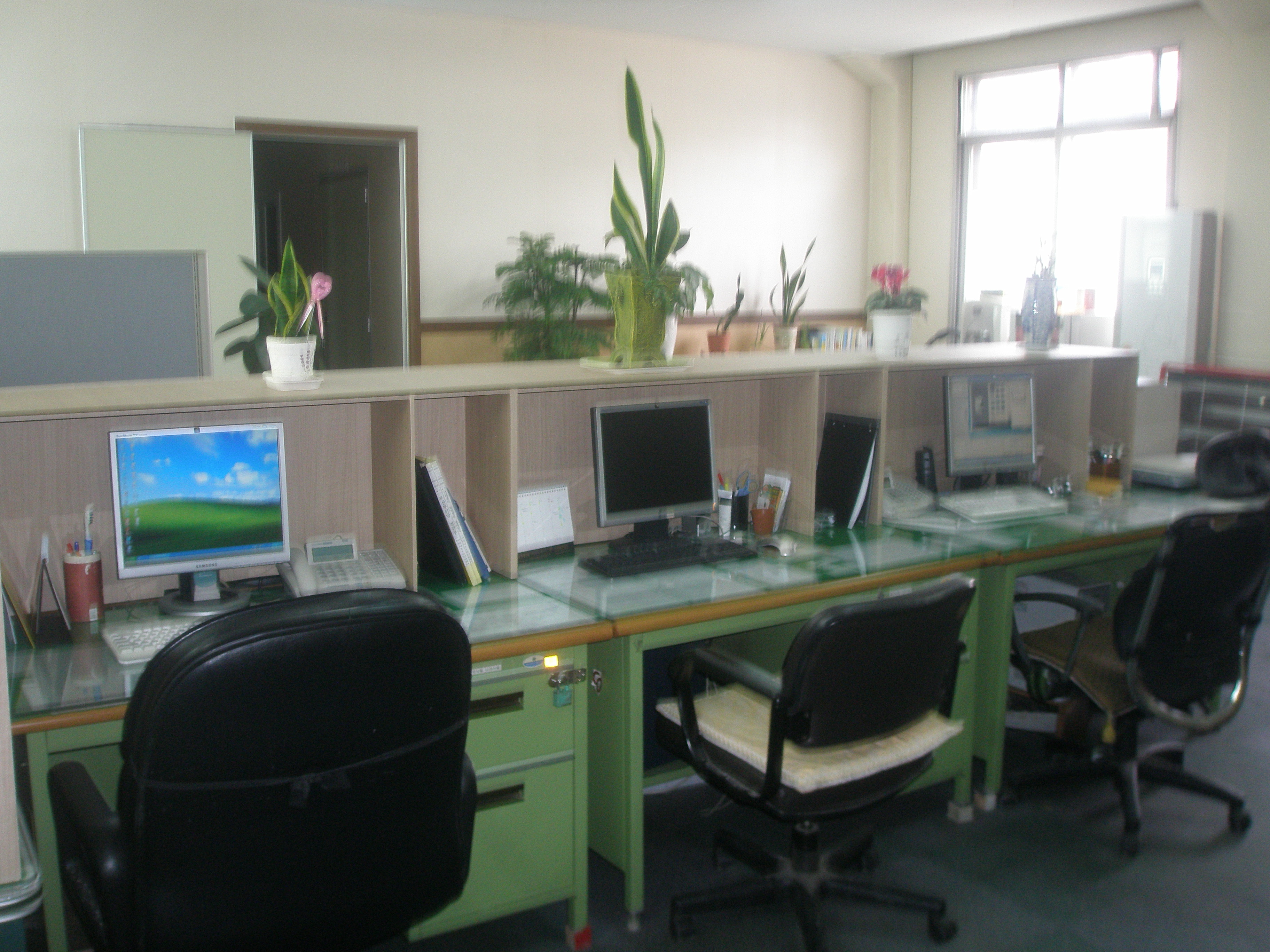 파티션과 직원분들이 하나하나 가지고 온 화분들로 화사한 분위기를