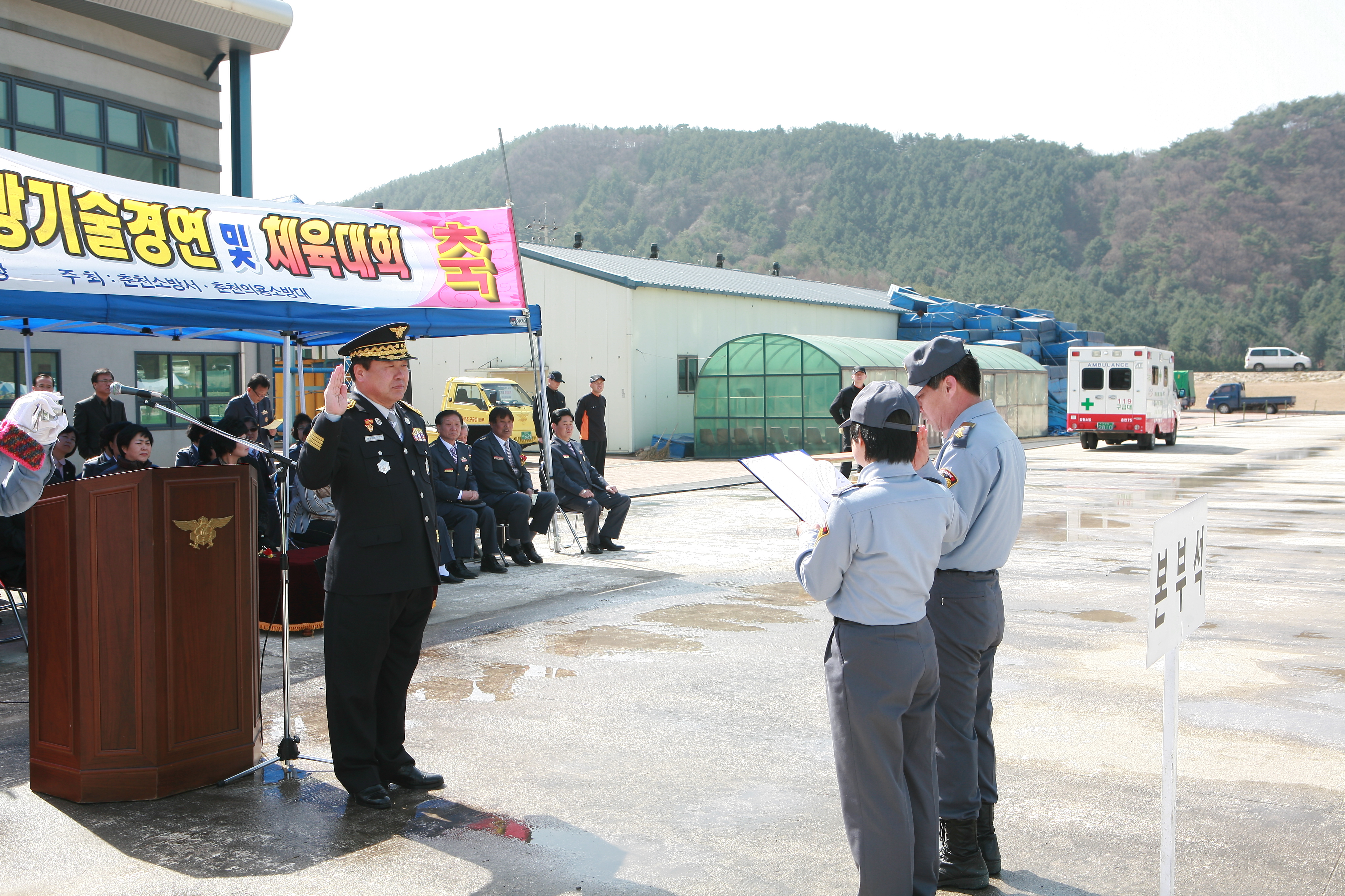 춘천소방서(서장 유용현)와 춘천시 의용소방대연합회(회장 이돈균)는 2010. 4. 2 춘천 의암빙상경기장에서 춘천시 의용소방대연합회 소방기술경연대회를 개최하였습니다.