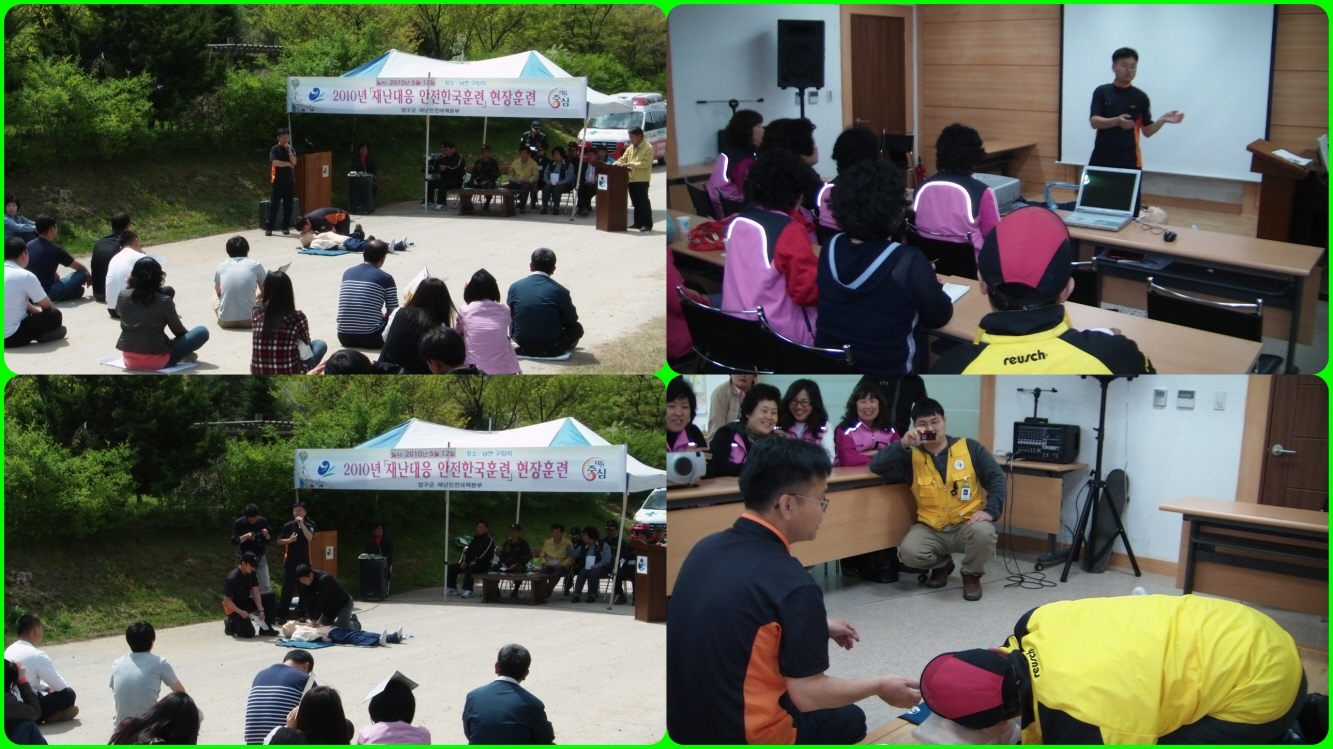 양구119안전센터(센터장 장춘식)은 5월 12일 독거노인 돌보는 사랑나눔회와 양구군에서 주관하여 실시하는 재난대응 훈련지원출동하여 군청직원대상으로 갑작스런 심정지 환자를 소생시킬 수 있는 심폐소생술 교육하였습니다. 일반적으로 4분 이상 산소가 공급되지 않으면 뇌와 다른 중요 신체기관의 세포가 죽기 때문에 심장이 정지된 상태의 환자에게 4분이내에 환자 가까이 있는 사람이 심폐소생술을 실시하도록 중요성을 일깨웠습니다.
