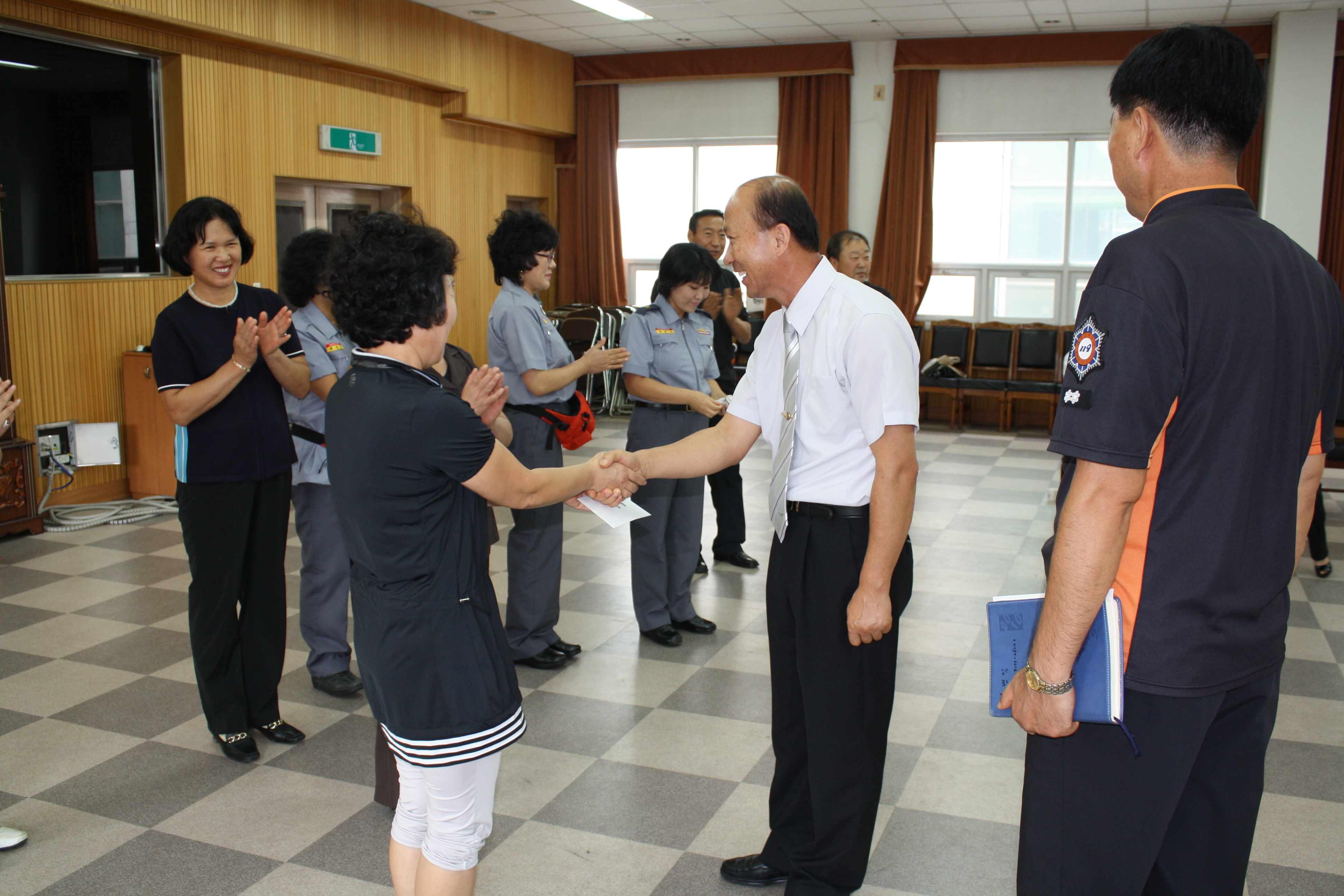 조완구 춘천소방서장님은 6일 오후 2시 대회의실에서 “제4회 강원도지사기 여성의용소방대 응급처치경연대회”에 출전하는 춘천시 선수단을 격려하고, 남은 기간 준비를 잘 해 좋은 성적을 거둬 주길 당부하였다.