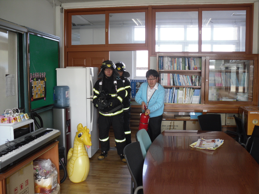 교직원 및 학생들에게 소화기 사용법 교육 및 실습을 실시하였으며, 가상화재진압훈련을 실시하면서 직원들에게 화재에 대한 경각심을 일깨워 줄 수 있었습니다.