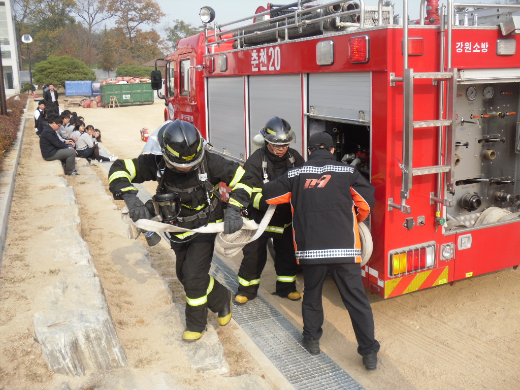 오늘 훈련에서는 화재발생시 학생들의 안전한 대피를 위해 대피