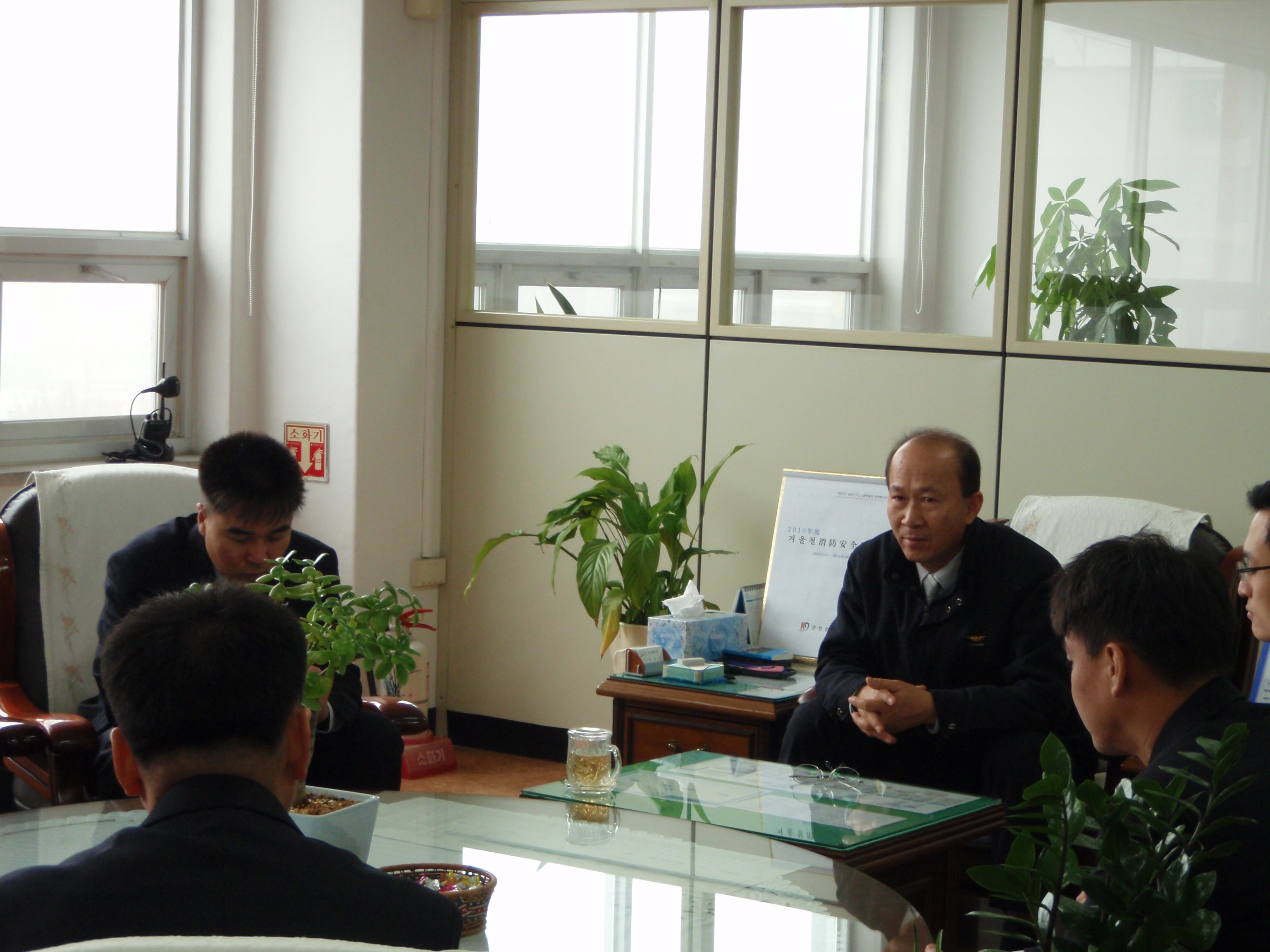 춘천소방서(서장 조완구)는 2010. 12. 20(월) 14:00~ 서장실에서 2010. 12. 21일자 전출자 11명에 대한 전출자 신고식을 가졌습니다. 이 자리에서 서장님께서는 어디서 근무를 하더라도 춘천소방서의 일원이었음을 잊지말아 줄 것과, 객지생활의 불편이 오히려 전화위복이 되어 향후 전입시에는 지금보다 더욱 발전되고 건강한 모습으로 만나자는 말씀으로 아쉬움을 전하였습니다.