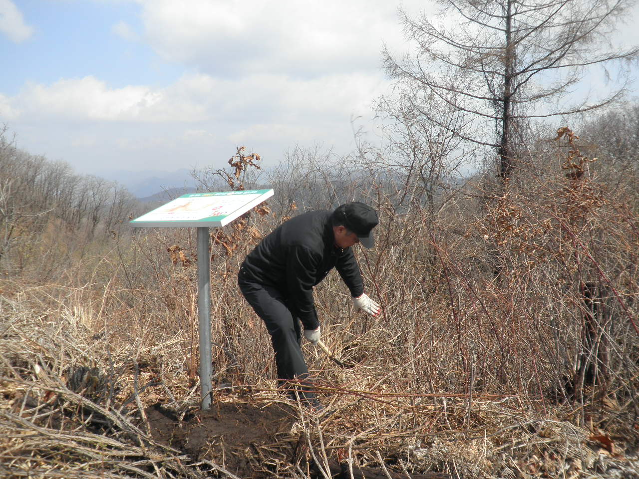 책임지기 위해서 비상시 신속한 구조가 이루어질 수 있도록 산악구조 위치표지판을 점검하는