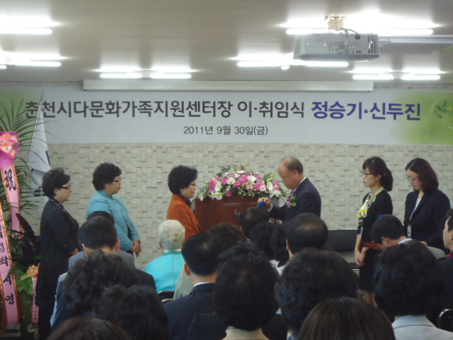 효자119안전센터(센터장 김영태)에서는 2011.9.30 오후2시 춘천시 다문화가족 지원센터장님의 이취임식에 참석하여 춘천소방서장님의 축하화환을 전달하고, 다문화가정에 대한 화재 예방을 당부하였습니다.