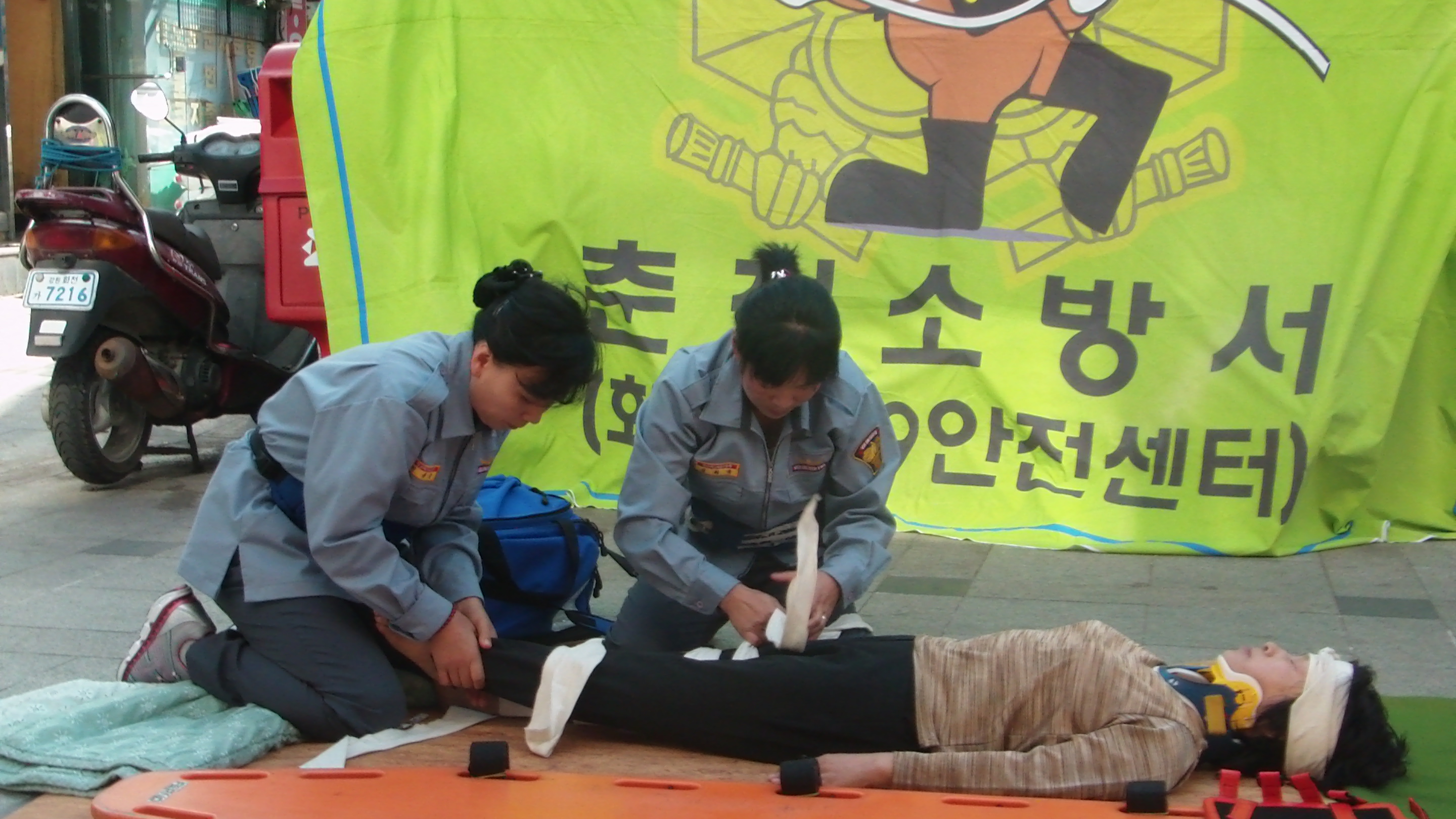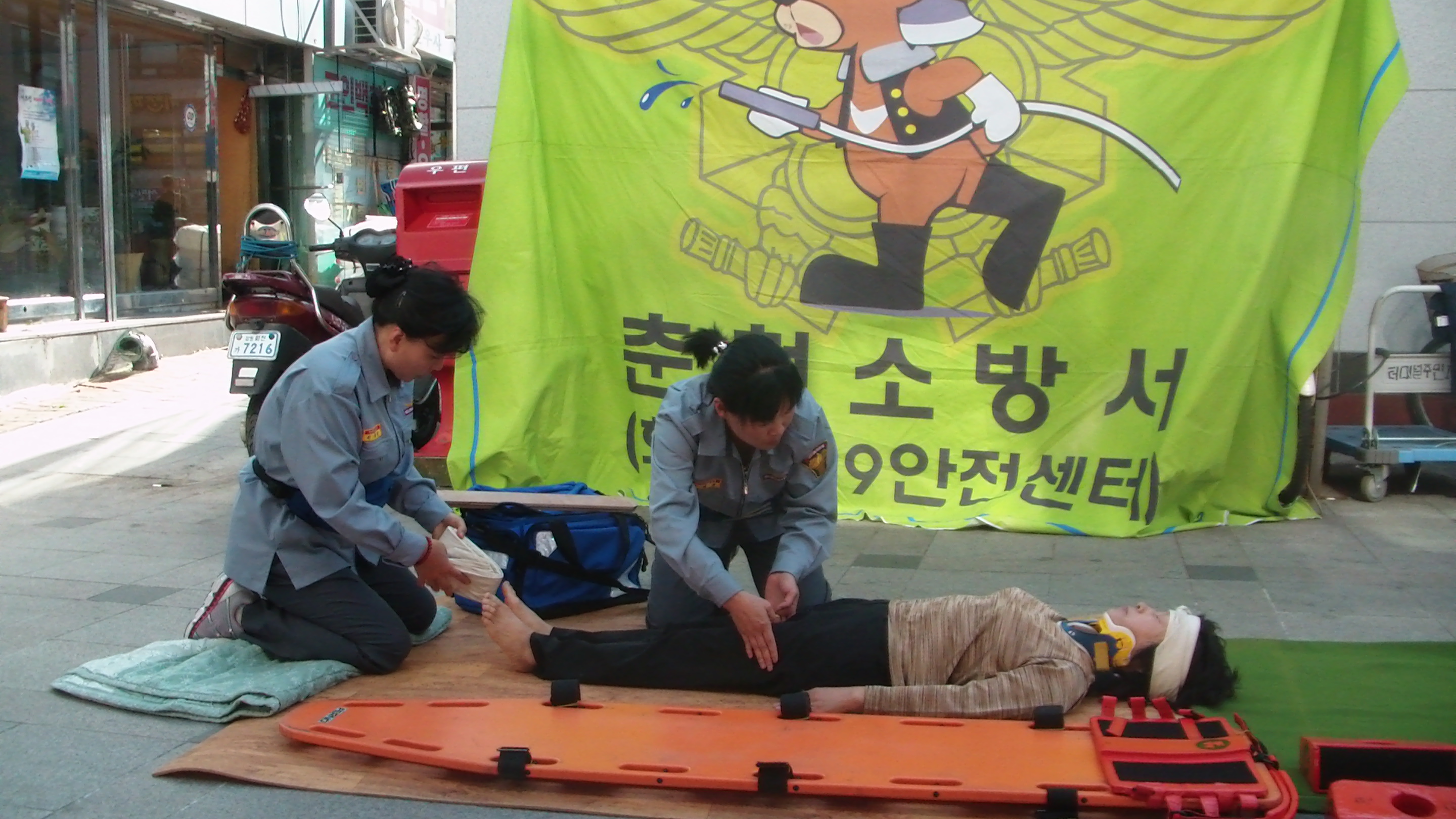 화천119안전센터(센터장 한광모)는 4일 오후에 화천시외버스터미널 앞에서 화천군민을 대상으로 일상생활에서 꼭 필요한 심폐소생술, 부목처치술 등 응급처치 교육을 실시하였다.