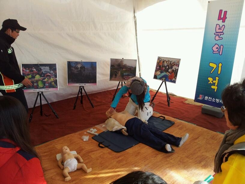 따라서 저희 화천안전센터에서는 조금더 시민들에게 다가가고 안전문화를 정착시키고자 축제장내에 119CP를 마련하여 심폐소생술을 전파하고 있으며 또한 응급환자발생시에 신속하고 친절한 응급처치를하여 시민들에게 다가가고 있습니다.