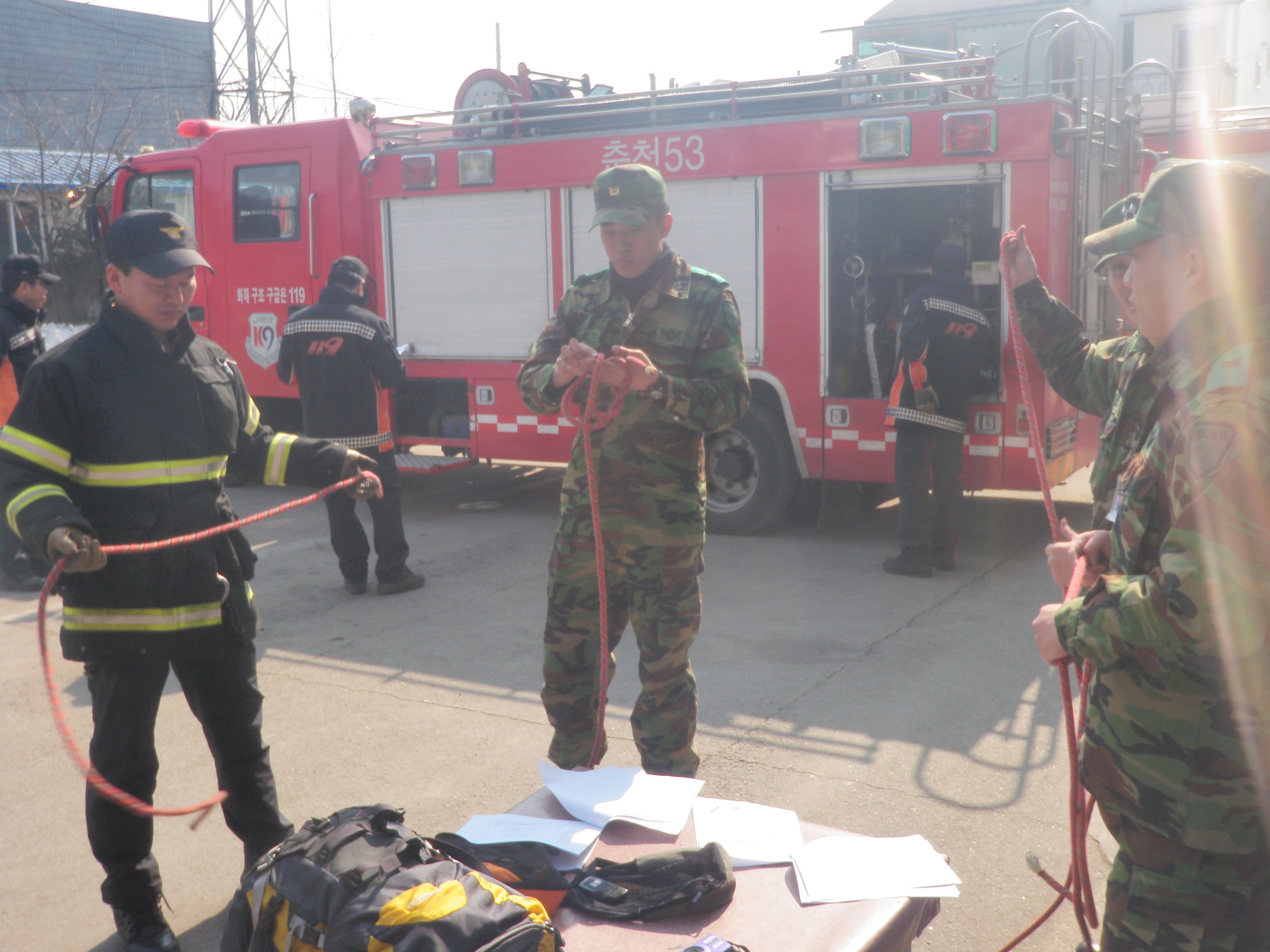 화천119안전센터(센터장 신상건)는 2월 20일 화천안전센터 사무실 및 전정에서 제27보병사단 수색대대(중위 장경수 외 4명)에게 로프, 도르래, 등강기 등 사용법, 매듭법, 운반법 등 장비를 활용한 산악 및 계곡 구조 방법, 그리고 산악안전사고 발생시 기본 응급처치 및 심폐소생술 교육을 실시하였다.