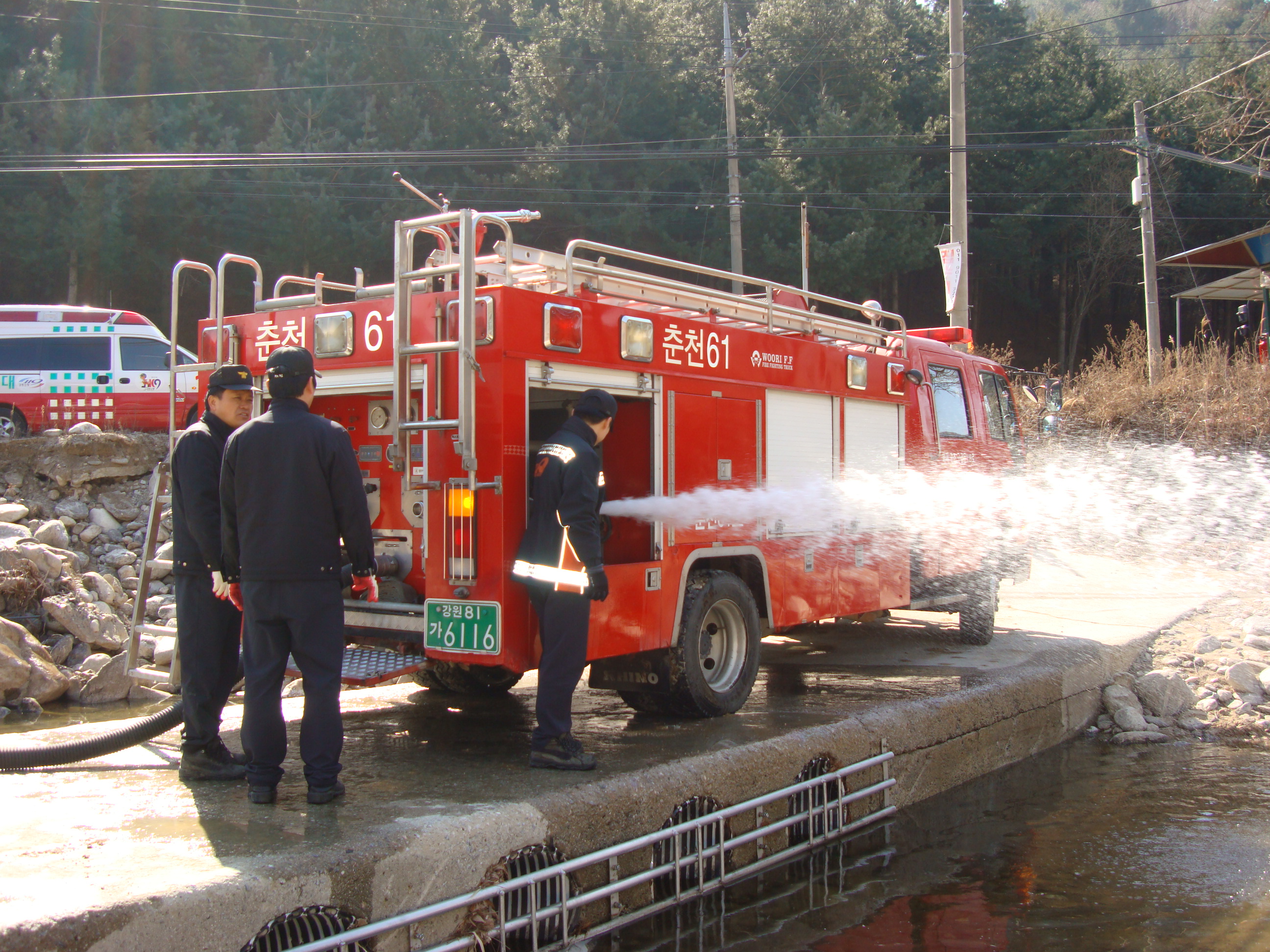 사내119안전센터(센터장 소방위 이강춘)에서는 오늘(03.15. 10:00~11:00) 물맑은 삼일리계곡에서 흡수관연결 및 방수훈련을 실시했습니다.