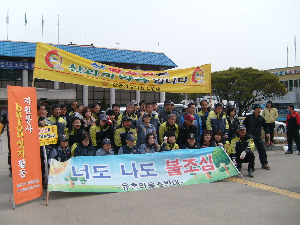 간동면의용소방대(간동의용소방대,간동여성의용소방대,간동유촌지대)는 화천군청(간동면사무소. 산불진화대)과 합동으로 1년중 산불발생 위험이 가장높은 청명 한식일을 즈음하여, 등산객 성묘객 등 입산자가 급증함에 따라 용화산 등산로에서 산불예방캠페인을 실시하였습니다.