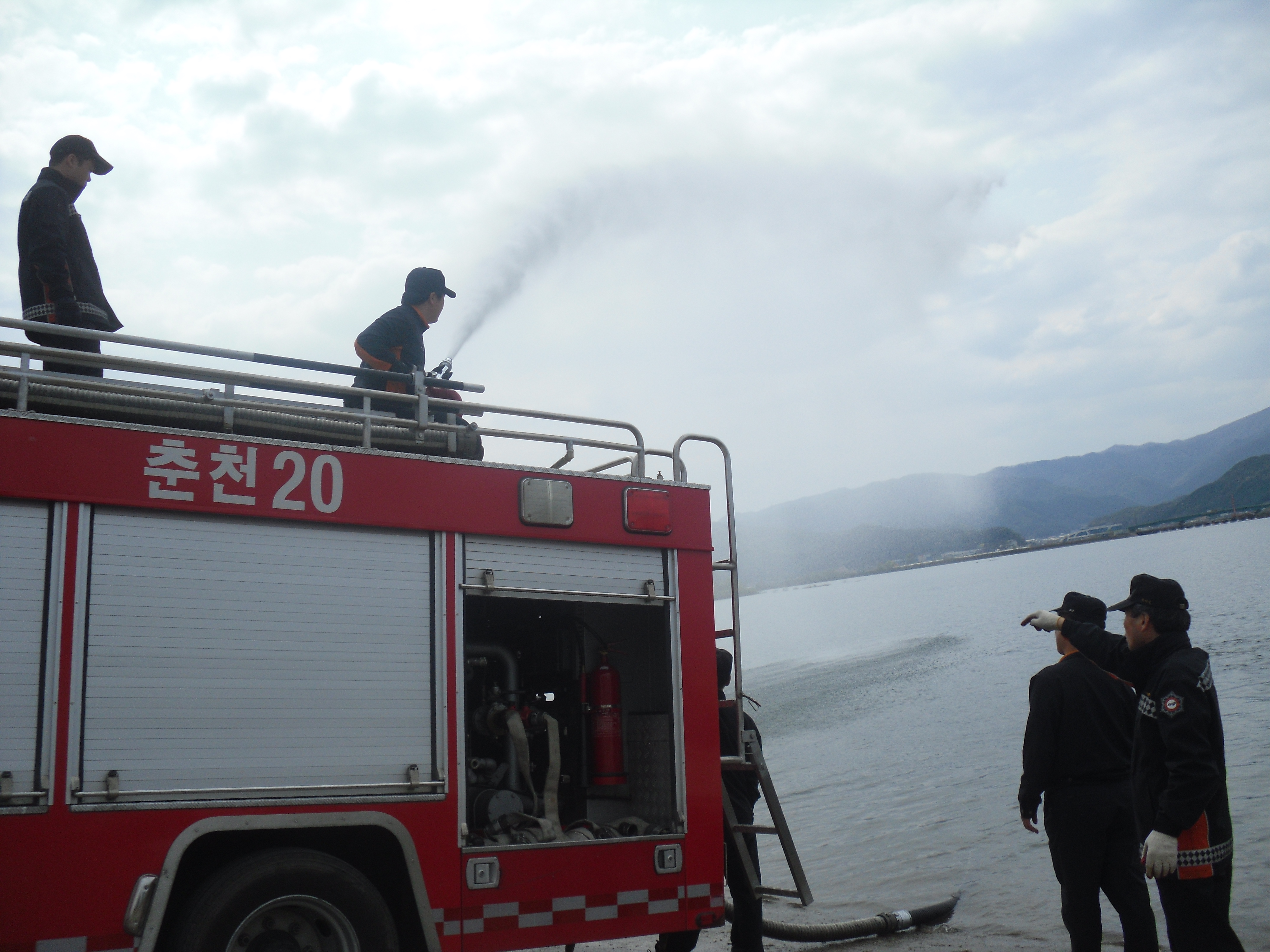 춘천소방서 후평119안전센터(센터장 정희정)는 2012. 4. 20 상중도 뱃터에서 도농복합도시인 우리지역의 특성상 농촌지역 화재발생 대비 흡수훈련을 실시하였습니다. 금번 훈련을 통하여 자동흡수, 수동흡수의 방법 이해와 실습을 통하여 상수도소화용수시설 미비 지역에서의 자연수리 이용에 어려움이 없도록 하고자 실시하였습니다.