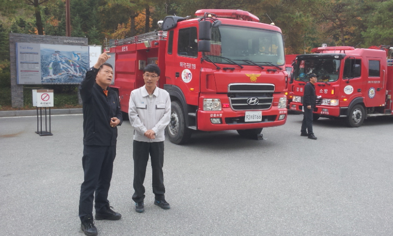 춘천소방서 강촌119안전센터(센터장 유재연)는 24일 14시경 남산면 백양리에 위치한 엘리시안 강촌 콘도미니엄을 대상으로 현장적응훈련을 실시하였다.