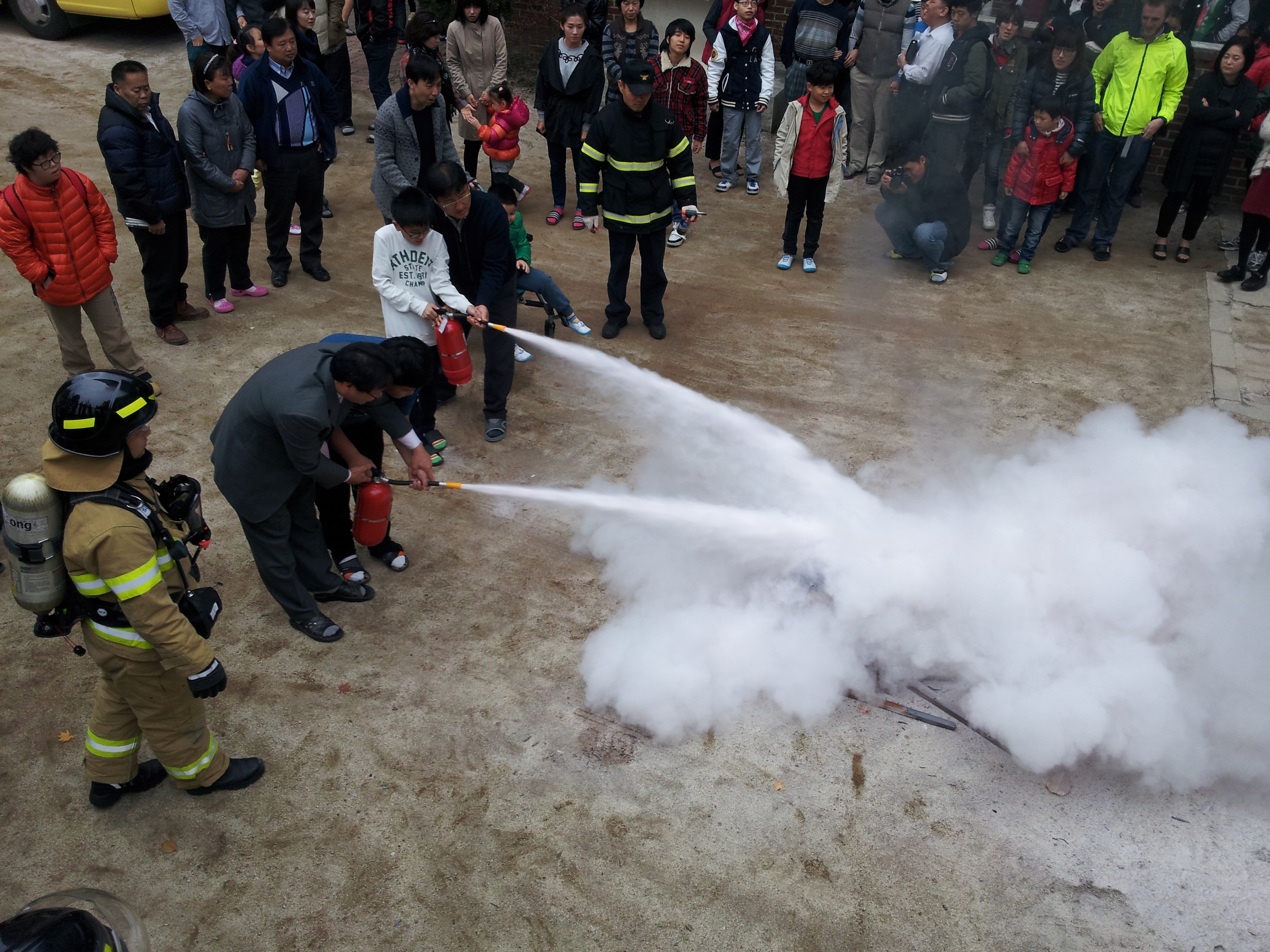 금일(2012.11.08) 현장대응과(과장 소방령 길종철) 에서는 명진학교에서 공공기관 합동소방훈련을 실시하였습니다. 금일훈련은 가상의 화재를 설정하고 화재진압 시범을 보였으며 관계자 및 학생들에게 화재시 대피요령 및 대처요령,소화기사용법에 대해서 교육하였습니다.
