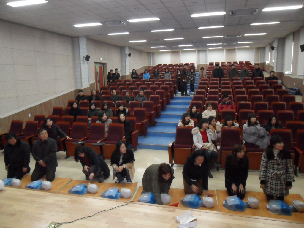 금일 현장대응과 춘천구급대는 14:00~15:00까지 춘천농공고로 심폐소생술 교육을 다녀왔습니다. 교육은 농공고 선생님 40여명을 대상으로 실시하였는요, 적극적인 참여로 즐거운 교육이 되었습니다. 교육에 참여하신 선생님들 추운 날씨에 감기 조심하세요. 타인의 생명을 살릴 수 있는 영웅이 될 준비가 되신걸 축하드립니다.^^ 짝짝짝~!!