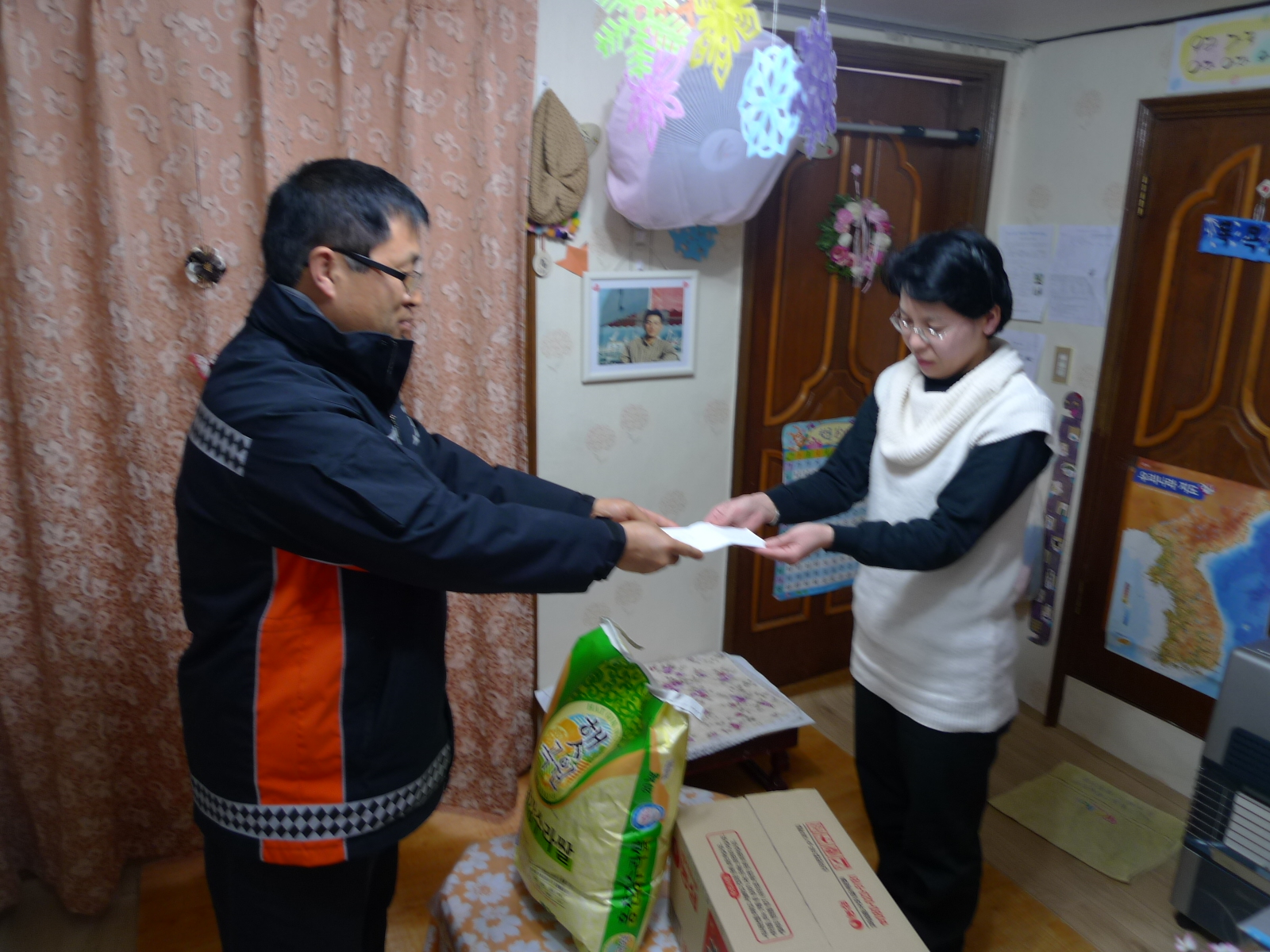 사내119안전센터(센터장 소방위 이강춘)에서는 2013.2.6(수) 관내 불우이웃인 요시코씨의 가정을 방문하여 설맞이 사랑나눔을 실시하였습니다.(사랑나눔회 라면1box, 쌀1포, 현금 10만원)