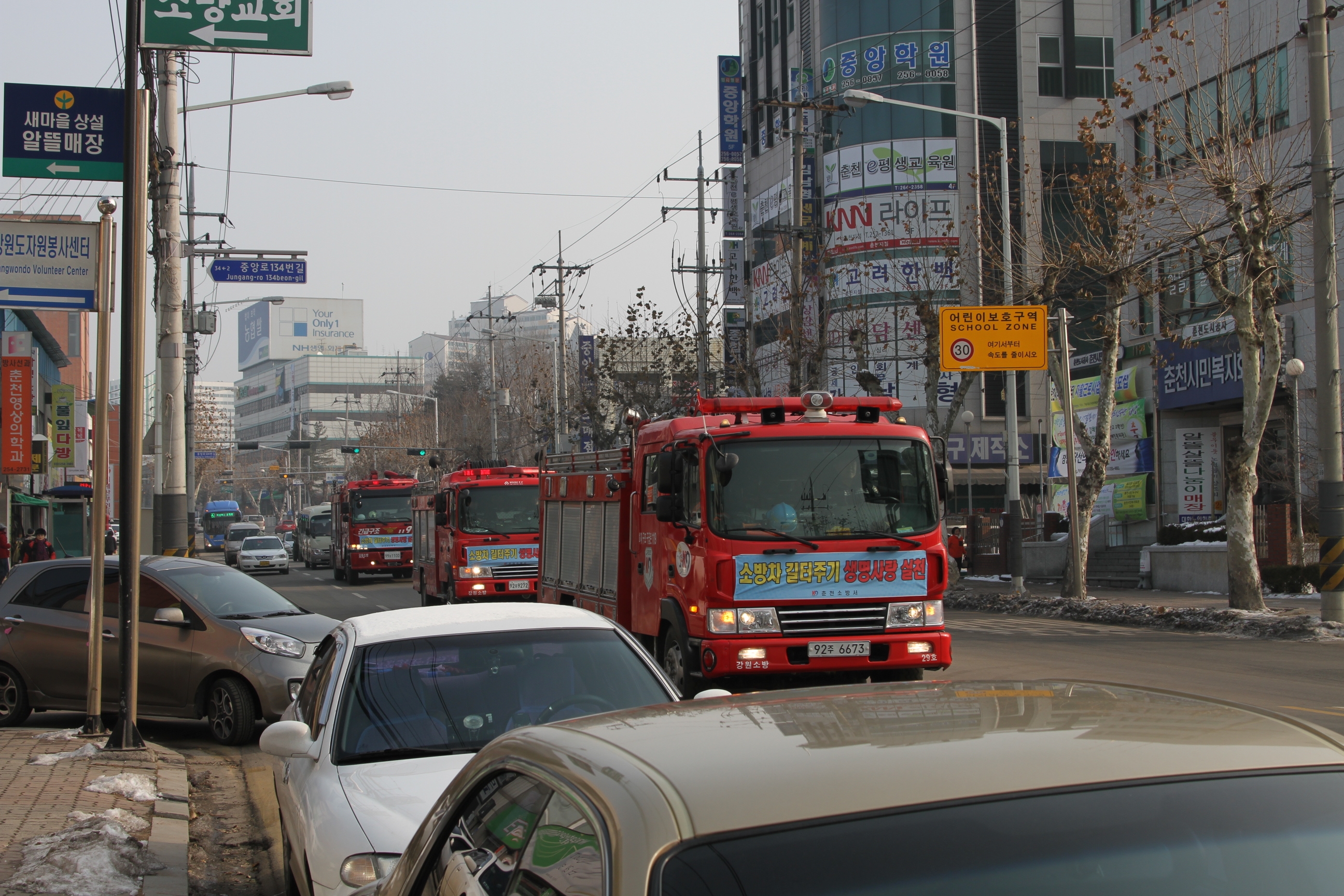 춘천소방서, 소방차 길터주기 훈련 실시