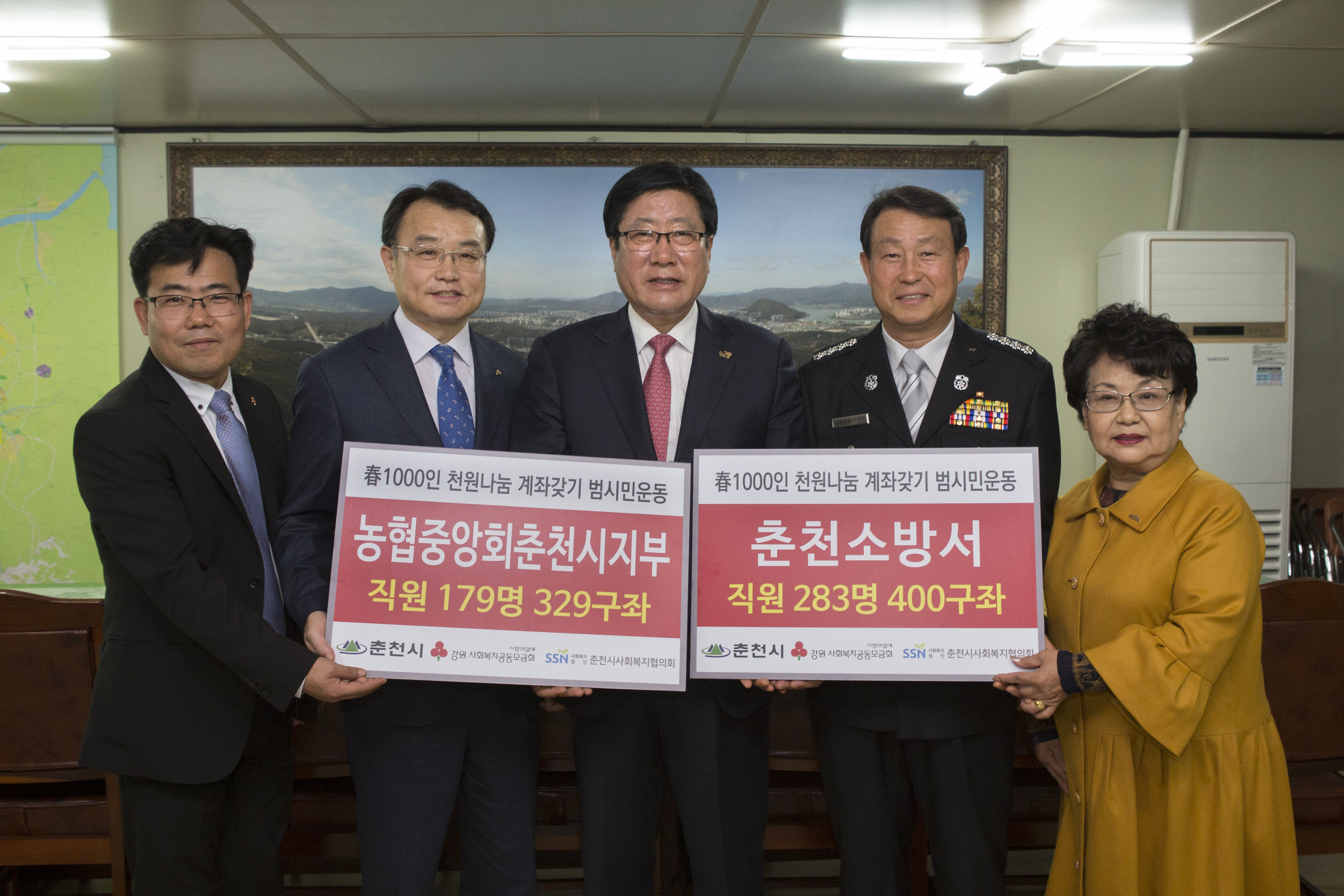 춘천소방서(서장 안중석)는 6일 오후2시 춘천시청 시장실에서 『春1000인 천원 나눔 계좌 갖기 범시민 운동』 참여에 따른 계좌 전달식을 가졌다.