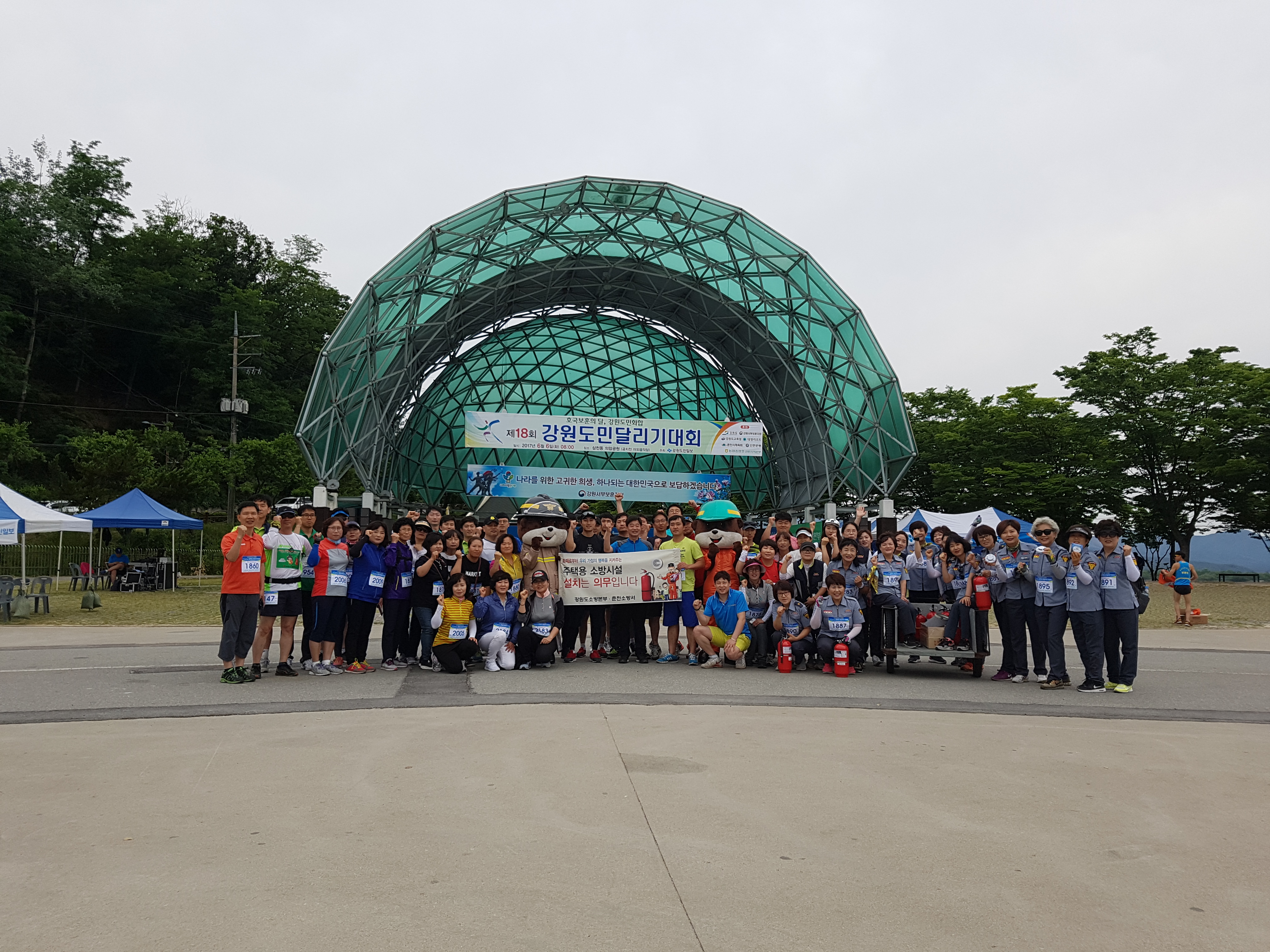 춘천소방서(서장 안중석)는 6일 오전 8시 공지천 야외음악당 앞에서 소방본부·춘천소방 소속직원 및 의용소방대 118명이 참여한 가운데 도민달리기 대회 출발장소에서 “주택용소방시설의 중요성을 알리고 설치를 독려하기 위한 홍보캠페인을 실시했다.