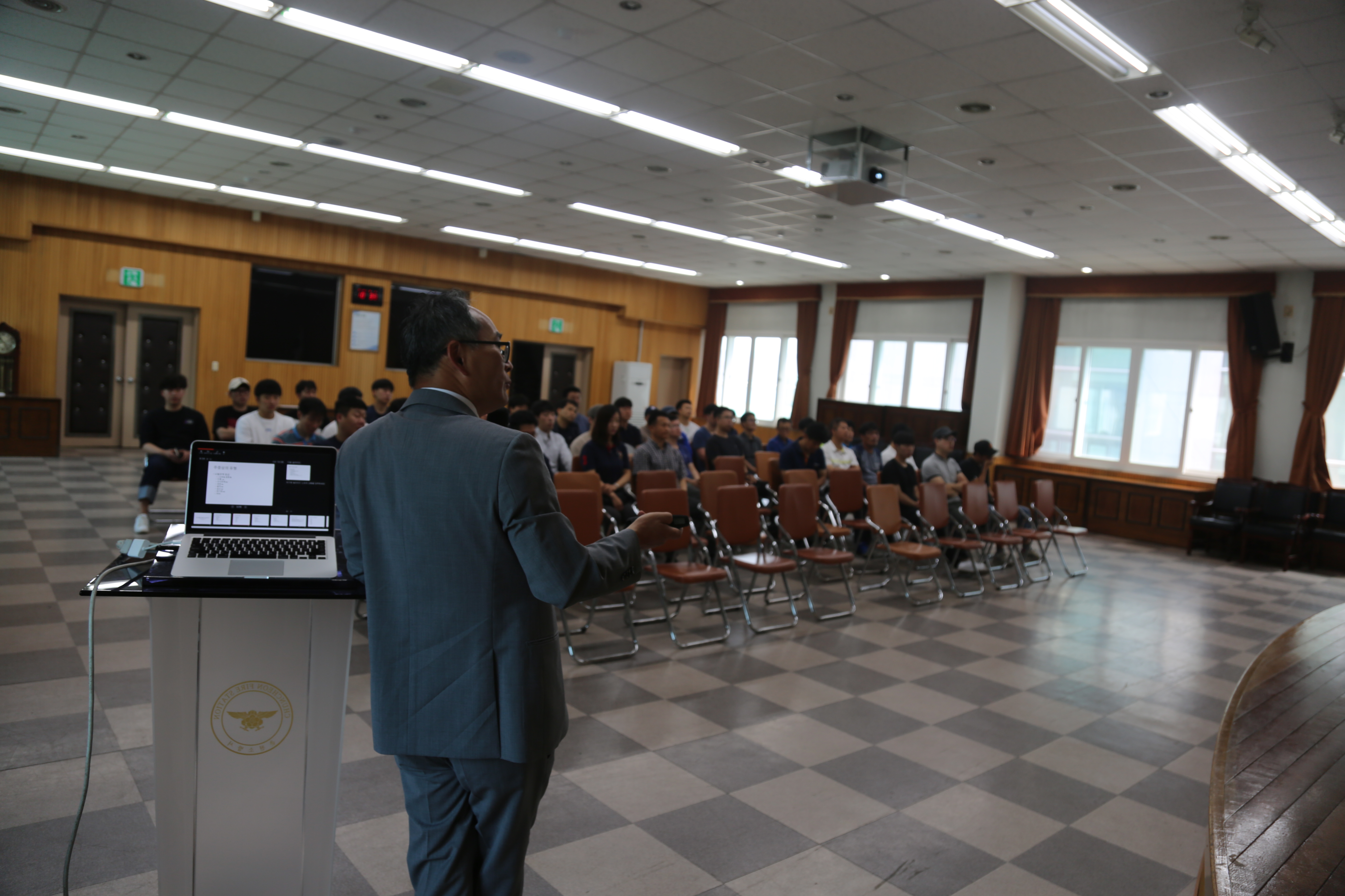 춘천소방서(서장 안중석)는 강원대학교 응급의학과장 조준휘 교수를 초청하여 금일 오전 10시 본서 대회의실에서 구급대원 67명을 대상으로 심정지, 중증외상, 유보중단환자 일지를 평가하고 심뇌혈관 질환자의 응급처치 교육을 실시했다.