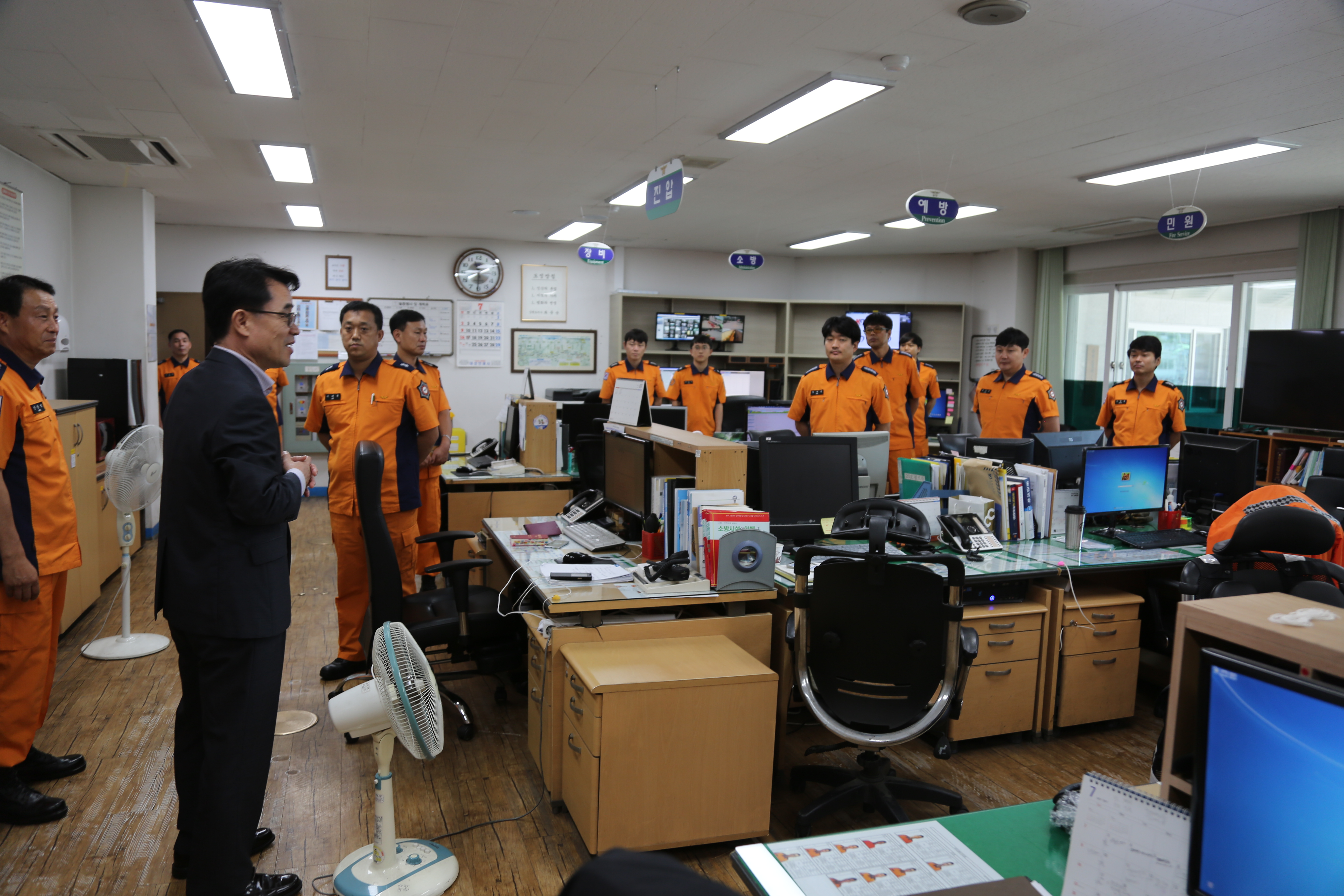이어 안중석 소방서장으로부터 주요현안업무를 보고 받고, 직원들의 근무환경을 확인하고 건의 및 애로사항을 청취했다.