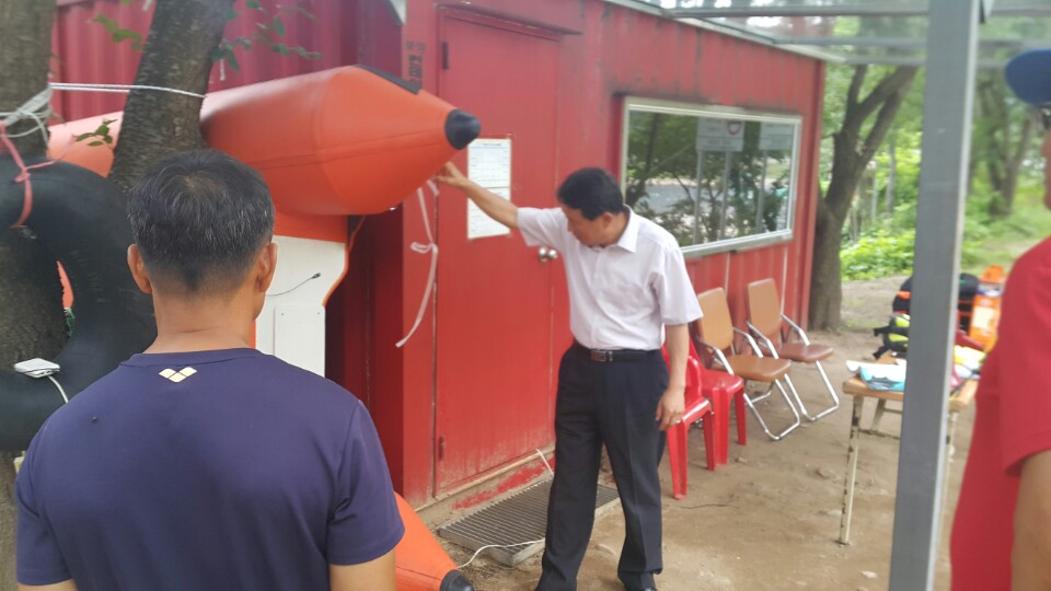 안중석 춘천소방서장은 27일 오후 2시 춘천시 남면 한덕유원지의 119시민수상구조대 근무현장을 방문해 구조대 운영실태를 점검하고, 구조대원의 노고를 격려하는 시간을 가졌다.