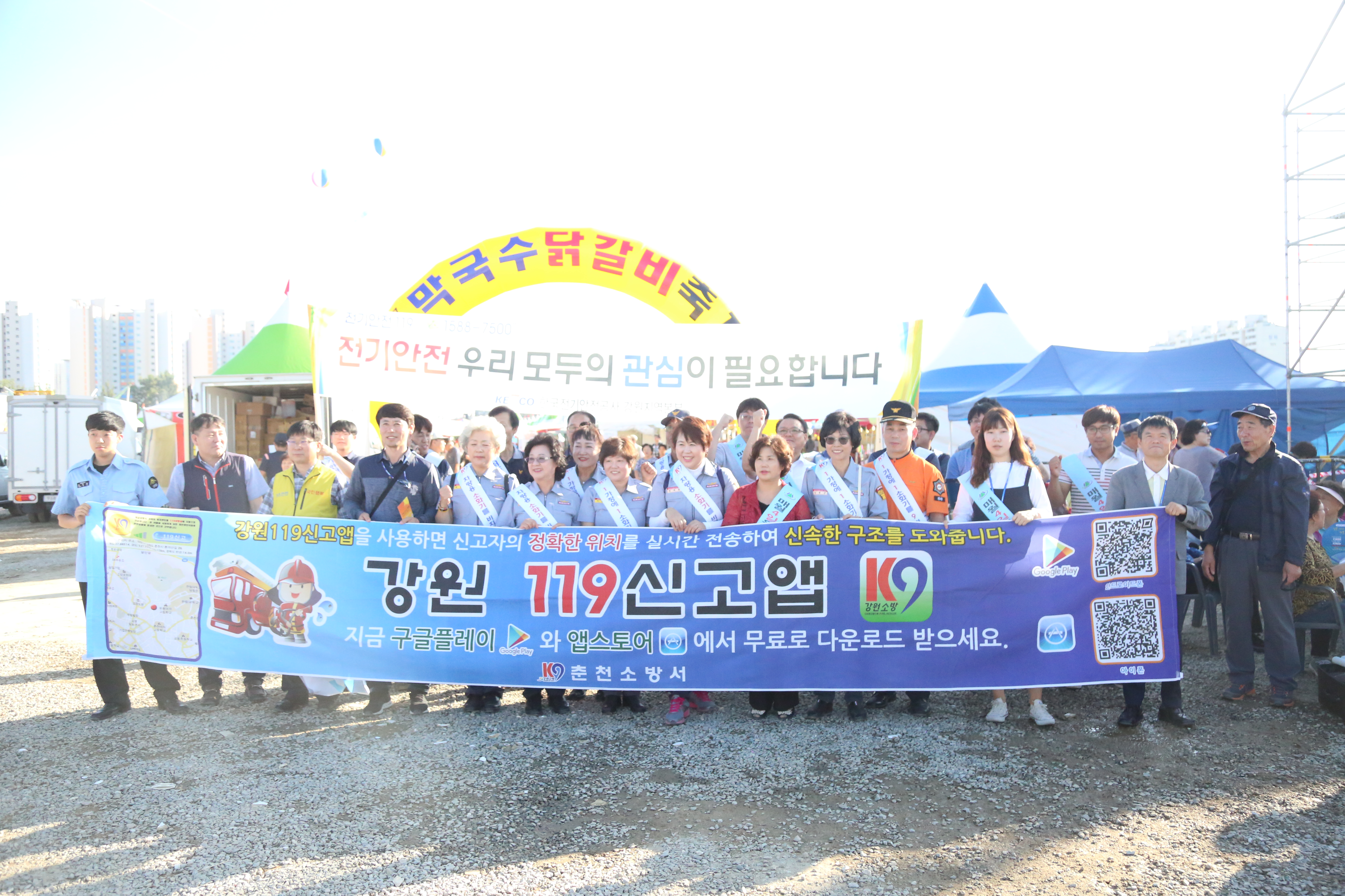 춘천소방서(서장 안중석)는 1일 오후 5시 춘천역과 “춘천막국수닭갈비축제장”에서 춘천시청 및 한국가스·전기안전공사 등 10개 유관기관·단체 관계자 100여명이 참여한 가운데 제258차 안전점검의 날과 연계한 합동안전캠페인을 실시했다.