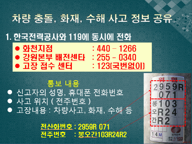 | 1510 | 합동 안전(감전)사고 예방 교육 실시 | 화천119안전센터 | 2011-12-13 | 999 | |