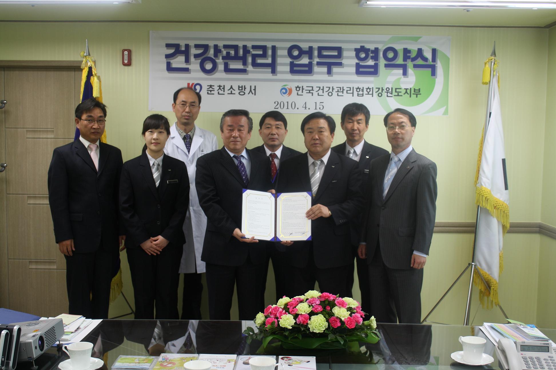 | 402 | 춘천소방서·한국건강관리협회, 건강관리 업무협약 체결 | 예방 | 2010-04-15 | 1234 | |