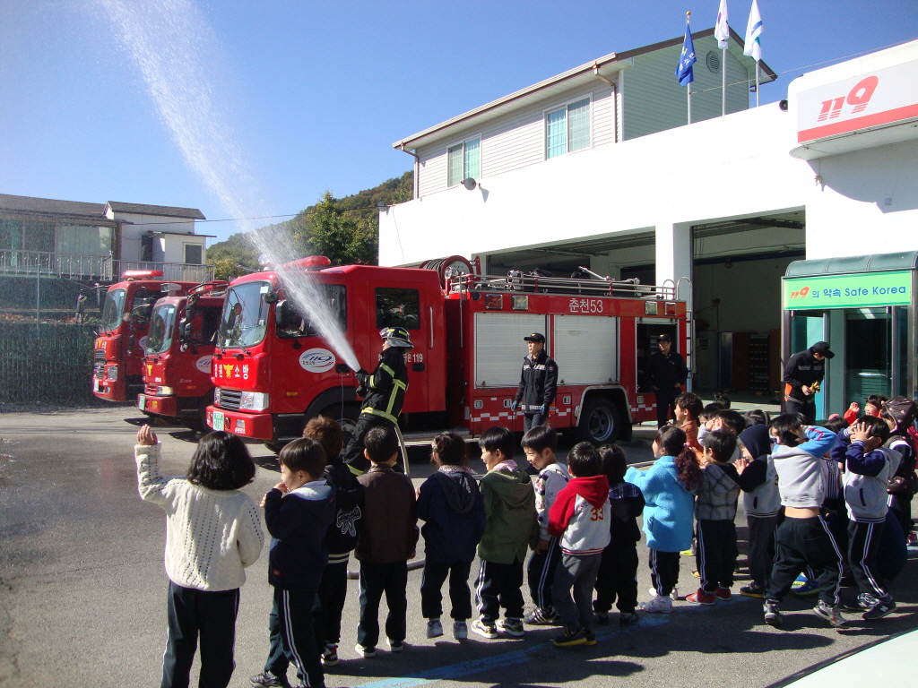 예사랑어린이집(화천읍 소재) 원생들이 화천119안전센터에 견학을 와서 물소화기 체험, 소방차 탑승, 화재시대피 및 신고요령에대서 교육을 하였습니다. 자라나는 어린아이들에게 좋은 추억도 되고 생활 소방안전의식이 생기는 계기가 되는 좋은 시간이었습니다.