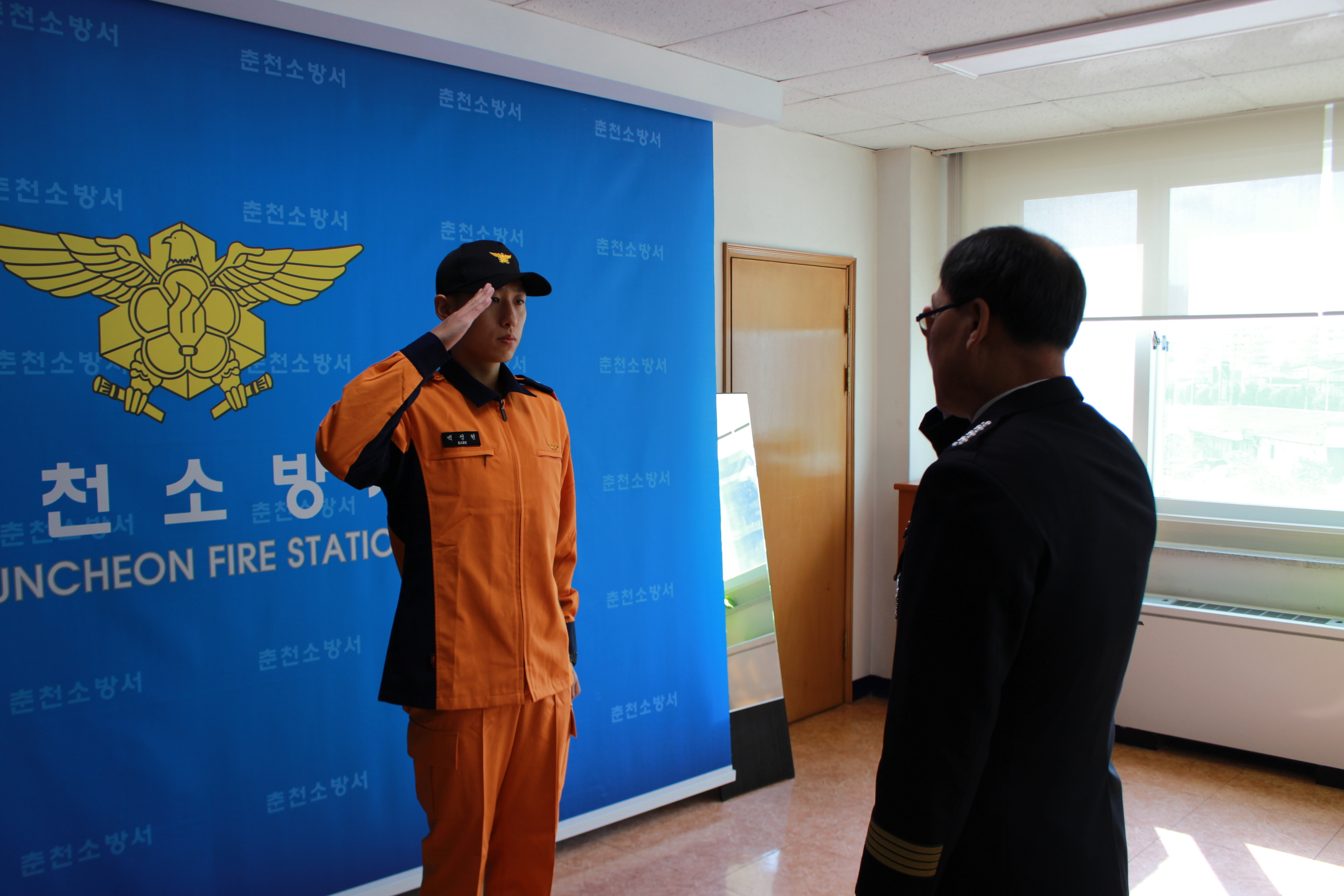 춘천소방서는 서장실에서 2015. 10. 8일자 제49기 신규전입