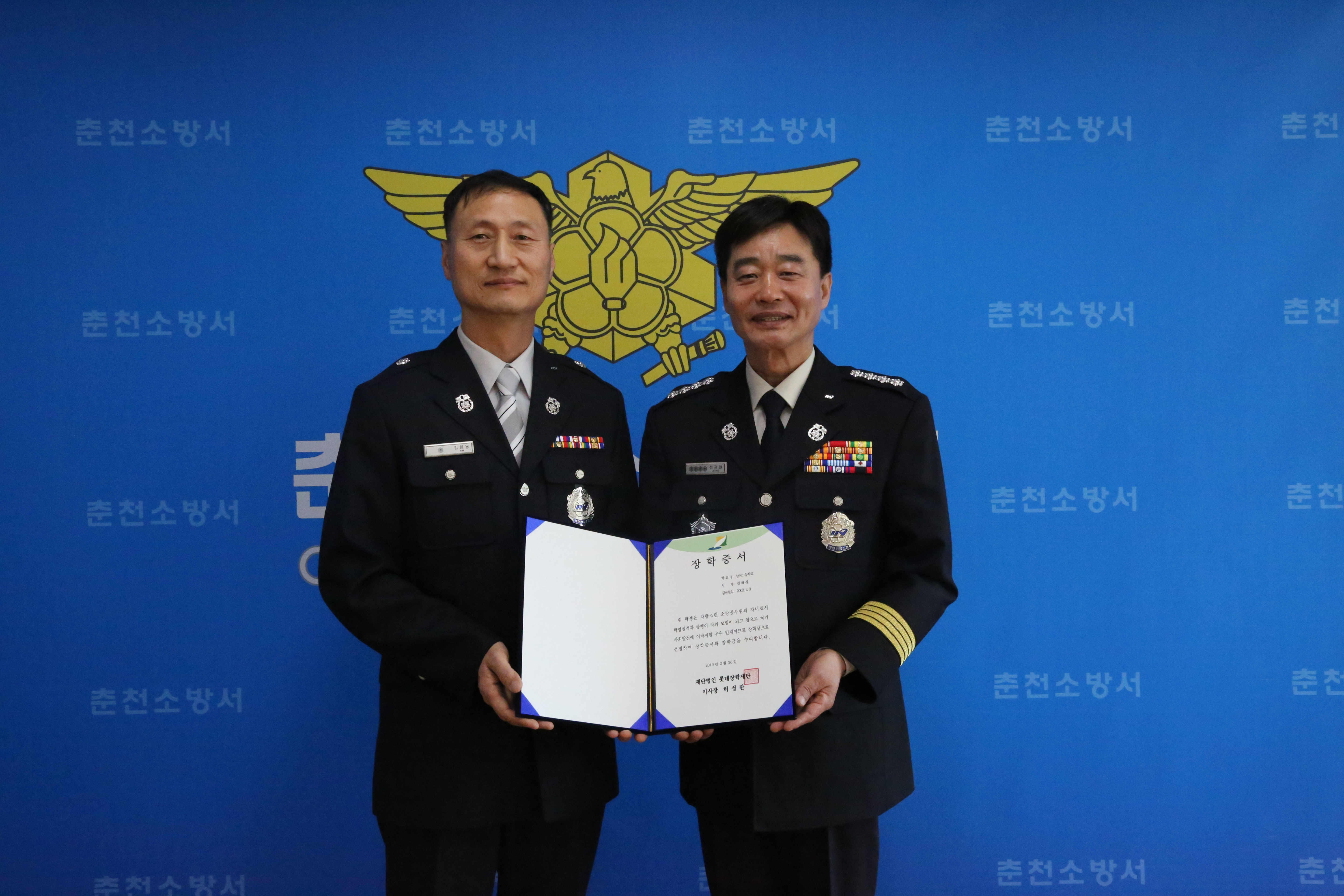 춘천소방서, 롯데장학재단 소방장학생 수여식