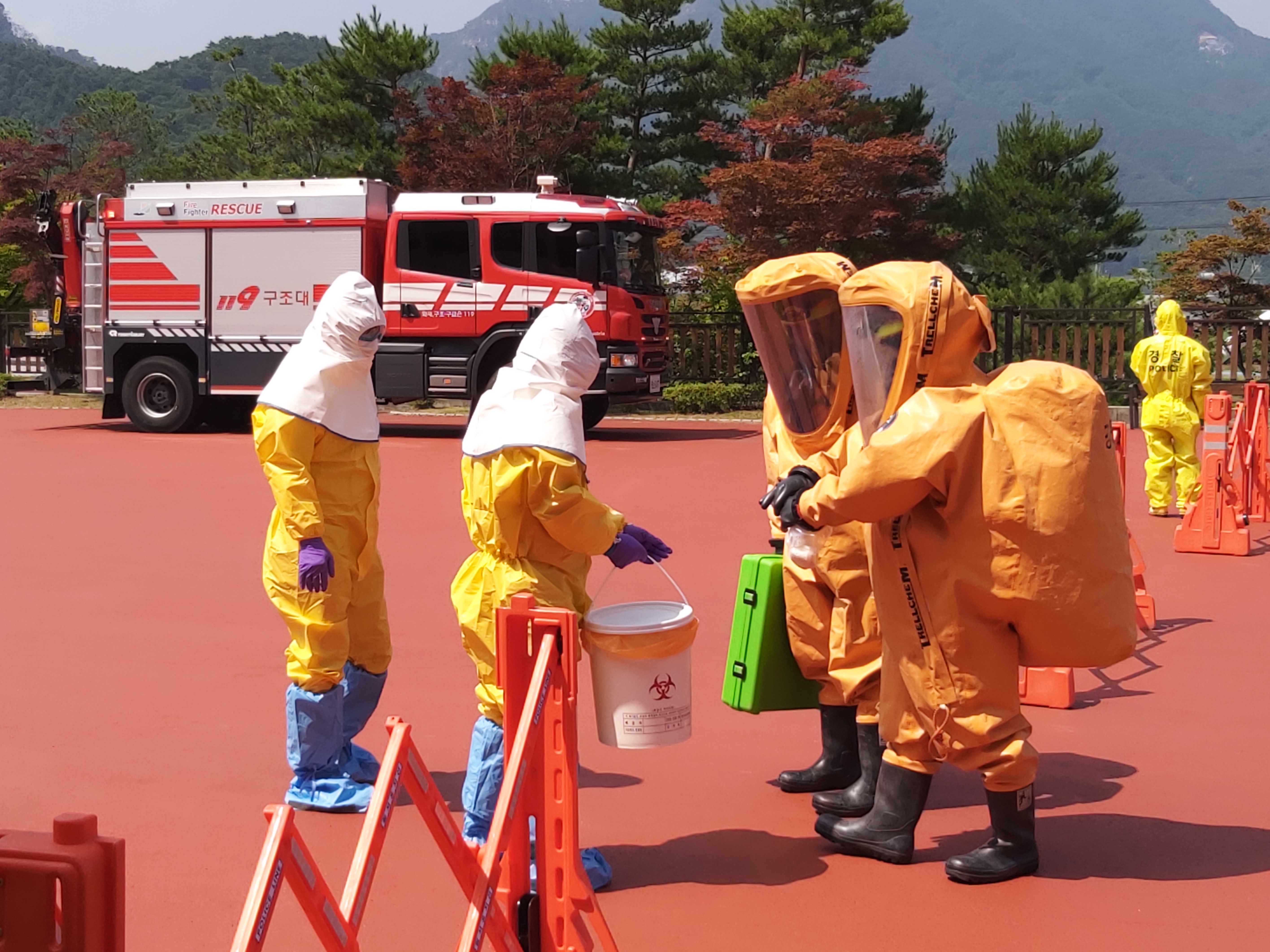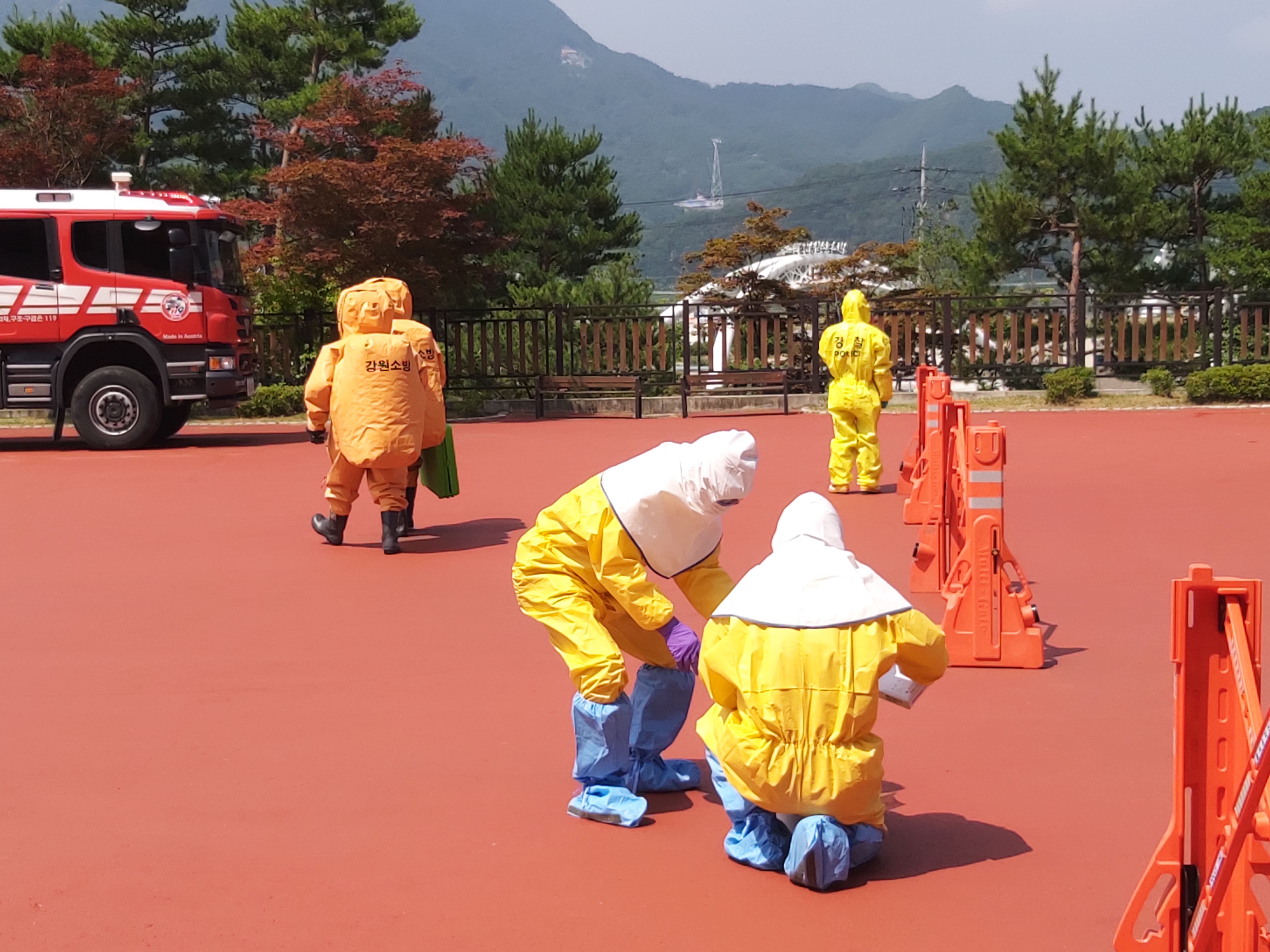 이날 훈련은 실제 생물테러 신고를 가정하여, 춘천소방서 외 경찰서, 보건소, 도시공사 4개 기관 40명이 참여한 가운데 진행됐다.