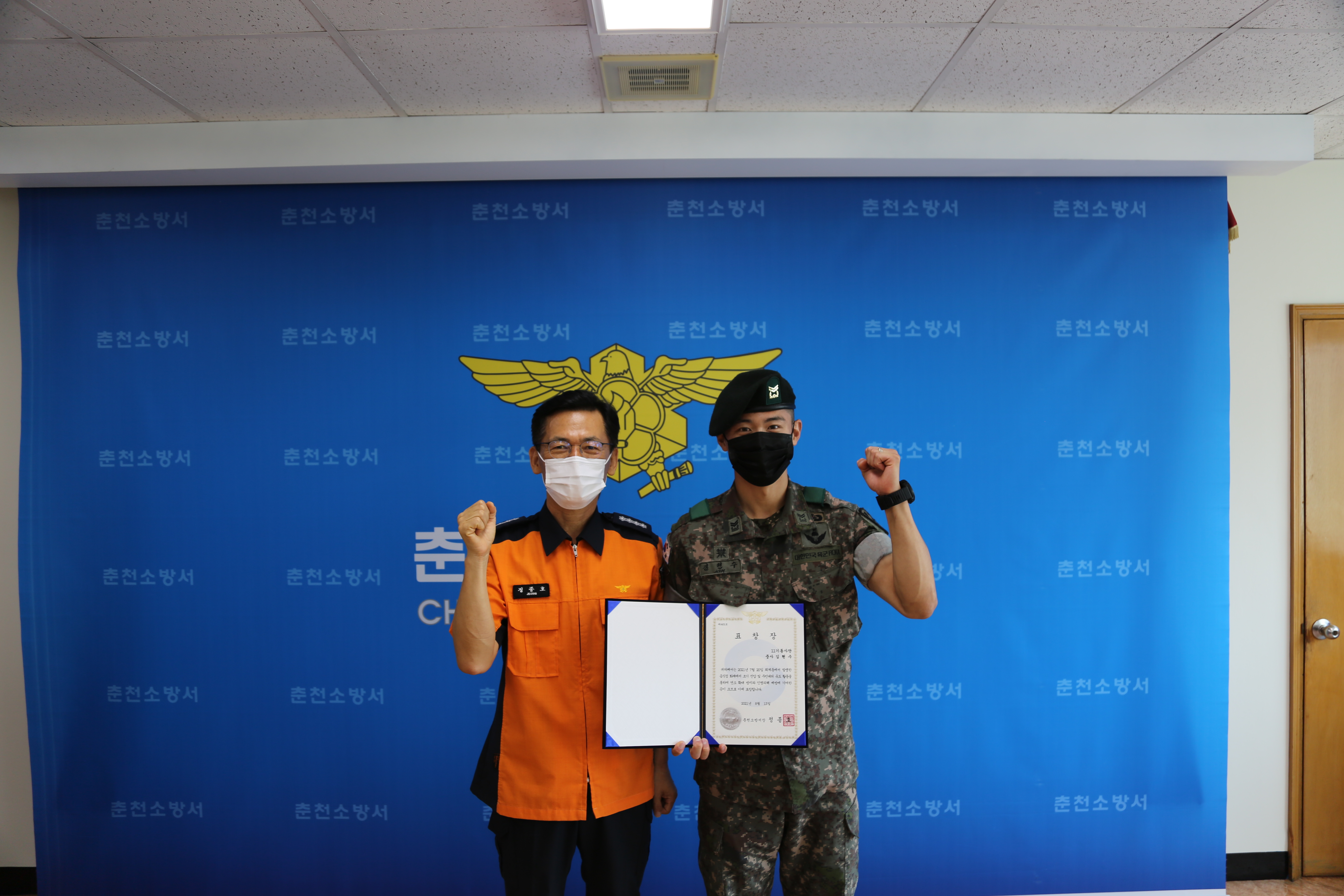 □ 춘천소방서(서장 정종호)는 13일 오전 9시께 서장실에서 화재진압 민간인 유공자에 대한 표창장 수여식을 실시했다고 밝혔다.