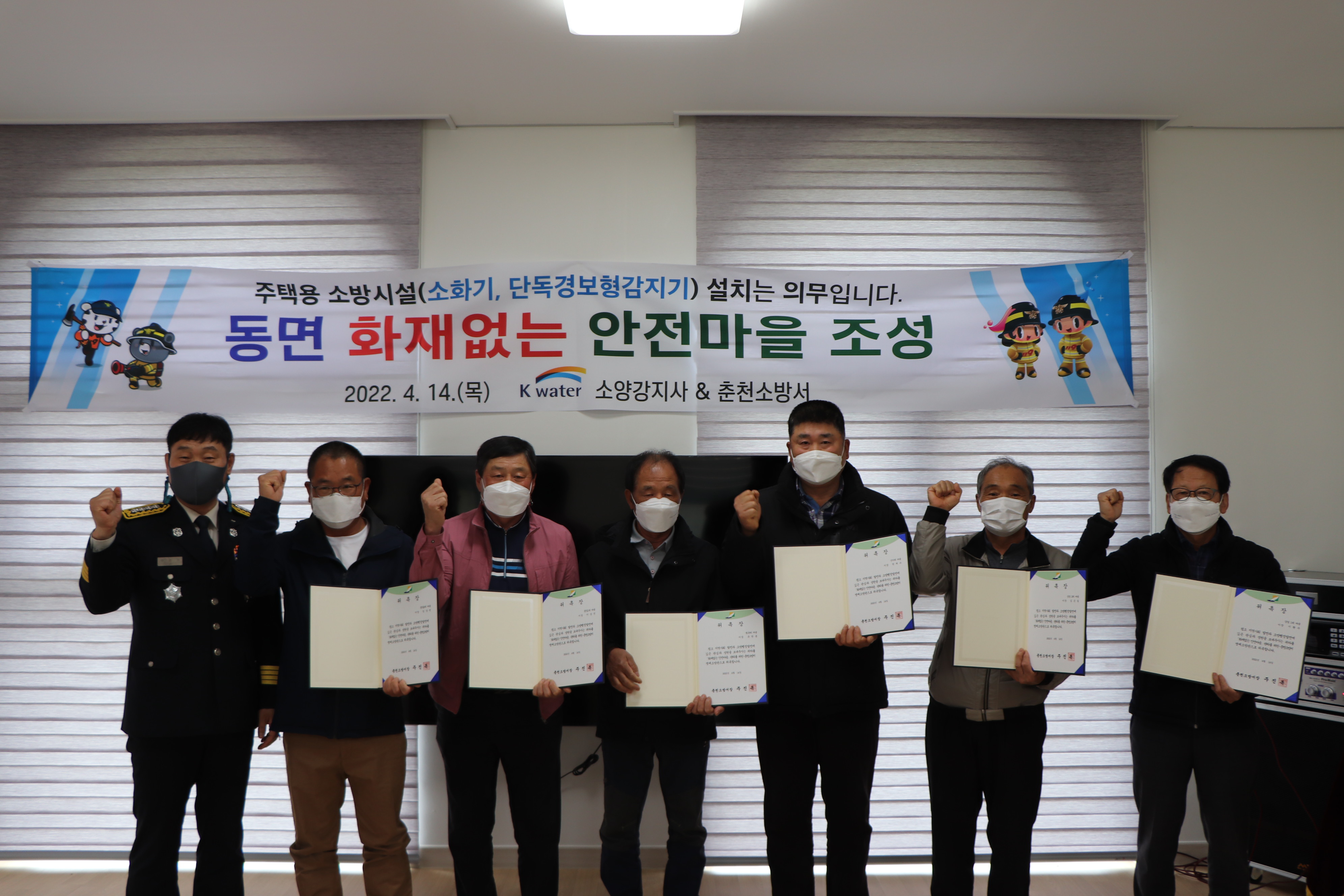 ○ 이번 행사는 화재발생시 소방서와 원거리에 위치해 신속대응이 어려운 마을을 대상으로 주택용소방시설을 보급함으로써 안전한 주거공간을 만들고 자율안전문화를 확산시키고자 마련됐으며, 주진복 춘천소방서장 등 의용소방대 22명을 비롯해 K-water 오병동 지사장, 김지숙, 김경희, 한중일 시의원, 윤흥래 동면농협조합장, 동면마을이장 및 주민 20여명 등이 참석한 가운데 진행됐다.
