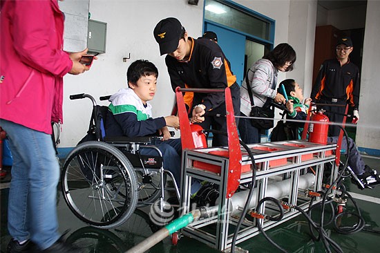 강원 춘천소방서(서장 우원기)는 17일 오전 소방서에서 동원학교 학생 50명을 대상으로 소화기 사용법과 화재시 대피요령 등을 내용으로 한 소방안전체험교육을 실시했다.