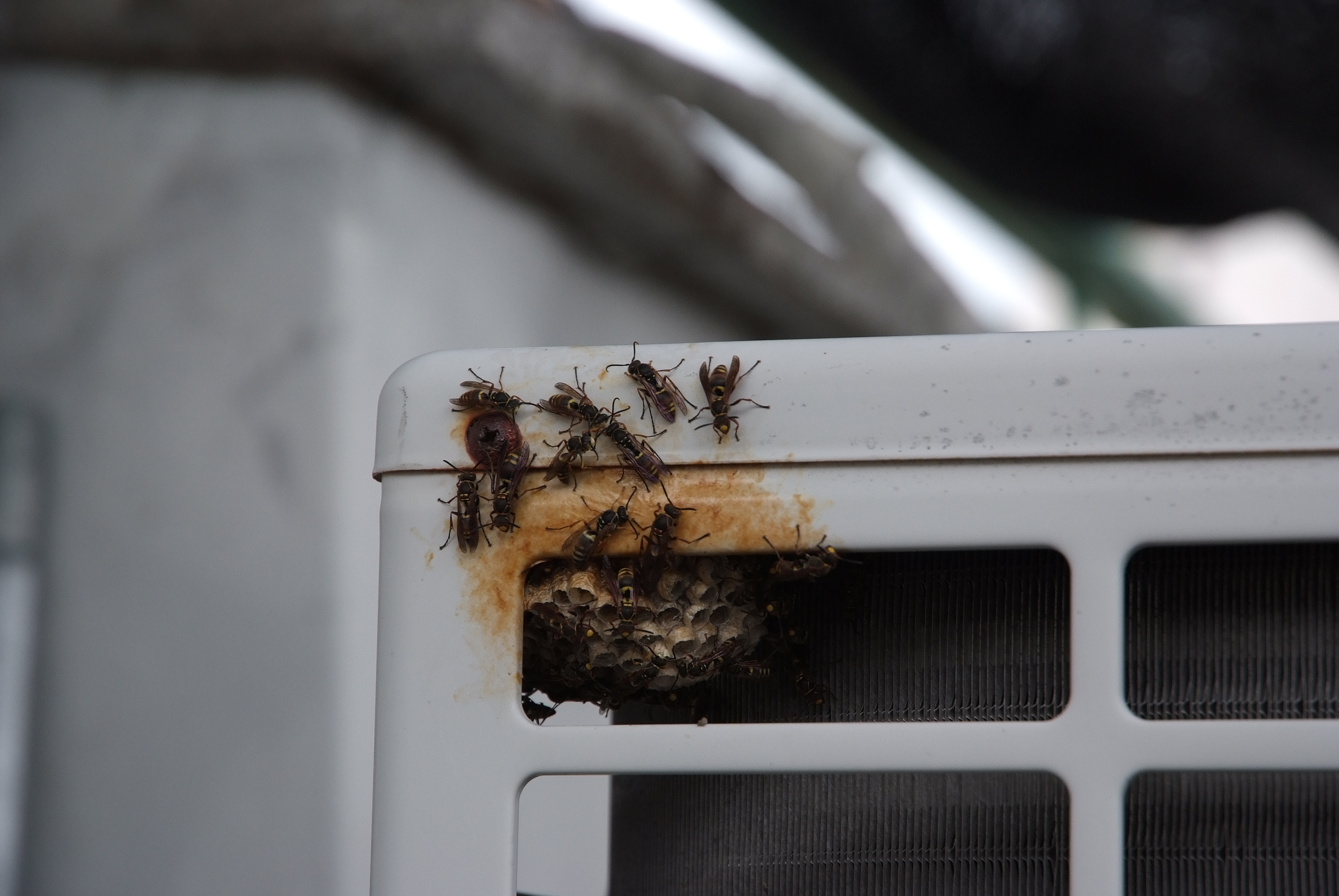 옥상 에어콘 실외기에 이넘들이 둥지를 틀었습니다.