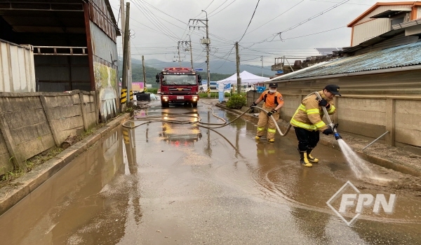 이길이 이장은 “소방관이 열심히 하고 있다. 폭우가 쏟아질 땐 맨몸으로 침수된 마을을 건너와 우리 주민의 생명을 구했다”며 “비가 그치자마자 복구 작업을 도와주고 있다. 물청소가 필요한 부분이 많은데 소방차로 물을 공급해줘서 정말 큰 도움이 된다”고 말했다.