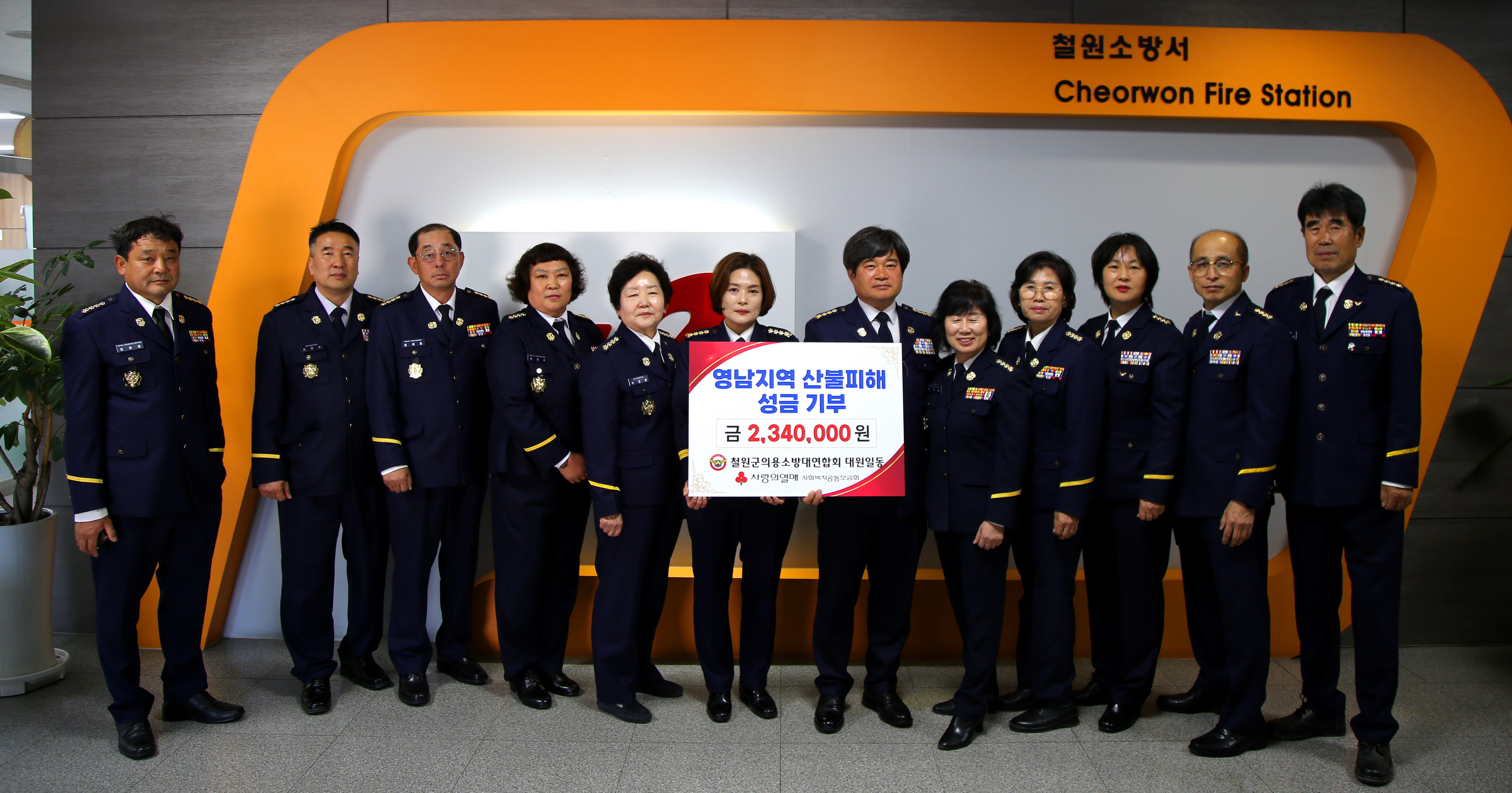 ○ 철원소방서 의용소방대연합회(회장 이영규, 허원립)가 16일 영남지역 산불 피해 복구를 지원하기 위해 성금 2,340,000원을 사랑의 열매 사회복지공동모금회를 통해 기부했다고 밝혔다.