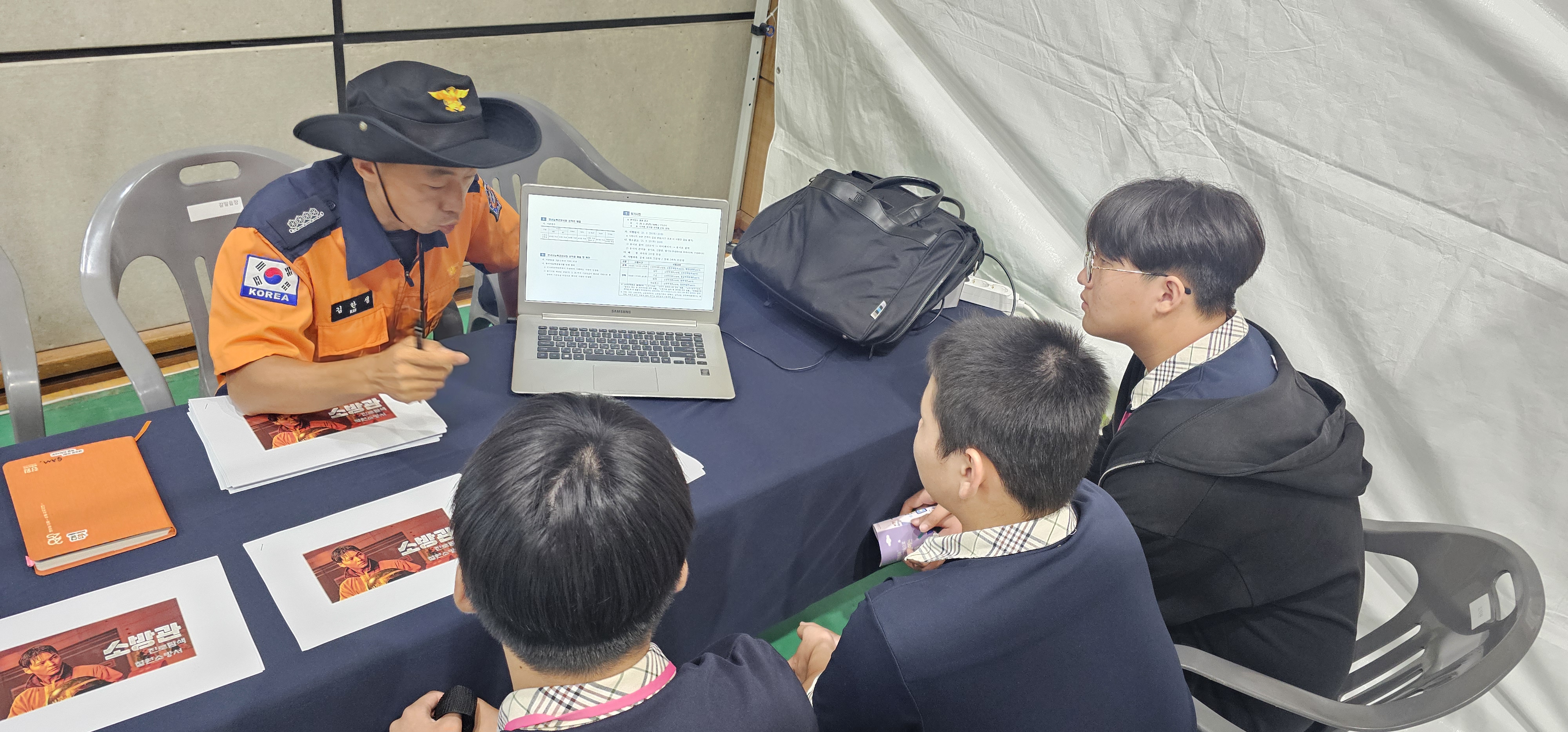 지역 중학생들을 대상으로 소방관 직업 체험 부스를 운영했다고 밝혔다.