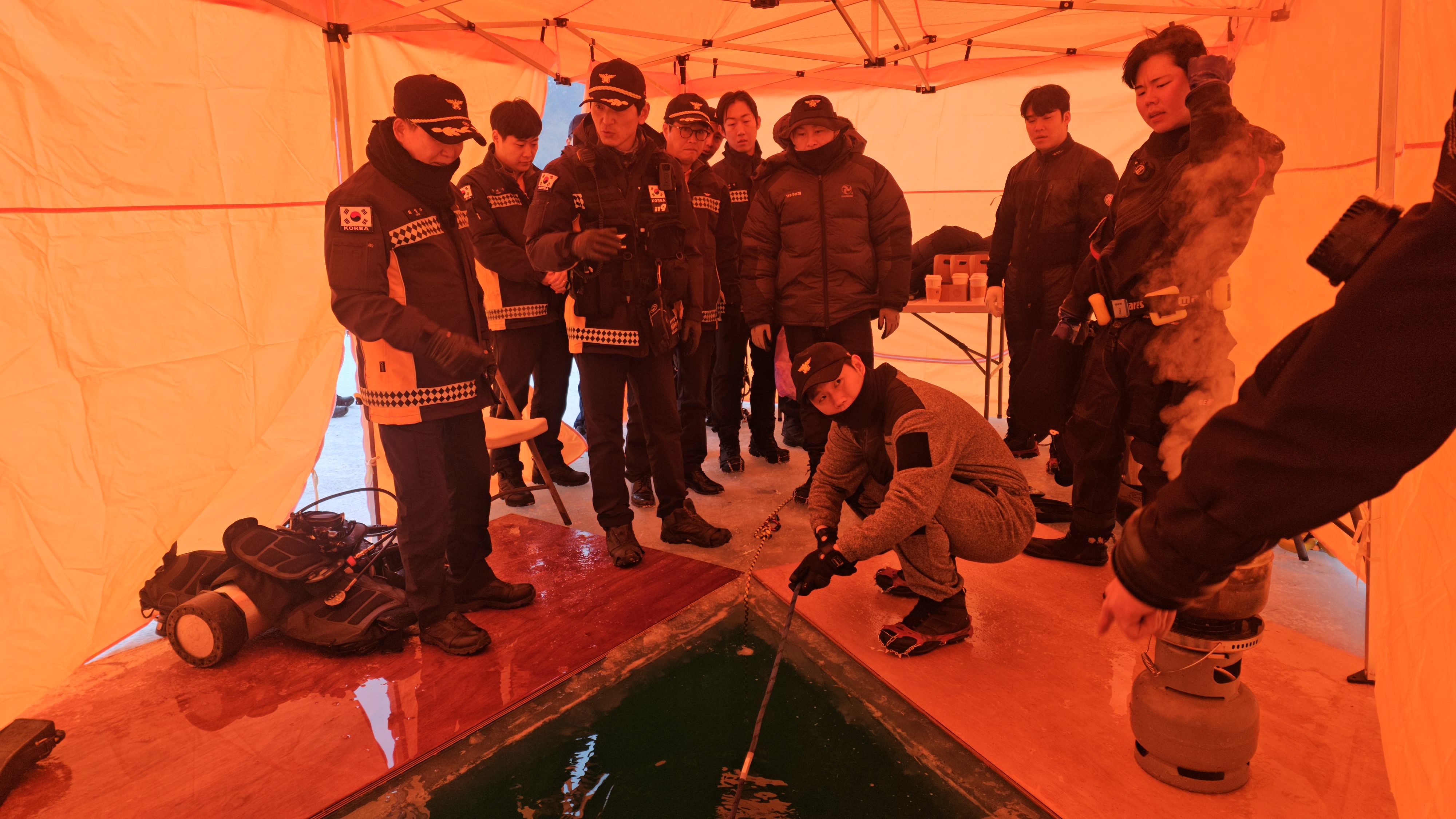 주요 훈련 내용으로는 얼음물 익수사고 발생 시 얼음 제거 및 익수자 인양 훈련, 안전한 입·출수구 확보 방법 숙달, 수중 탐색 기법 및 마네킨을 활용한 익수자 구조훈련 등이 포함됐다. 또한 잠수 물리 이론 교육과 잠수장비 유지관리 방법, 수난구조장비 점검 및 사용법 숙지, 건식잠수복 착용 후 중성부력 유지 훈련 등 전문 잠수기술 향상 교육도 병행했다.