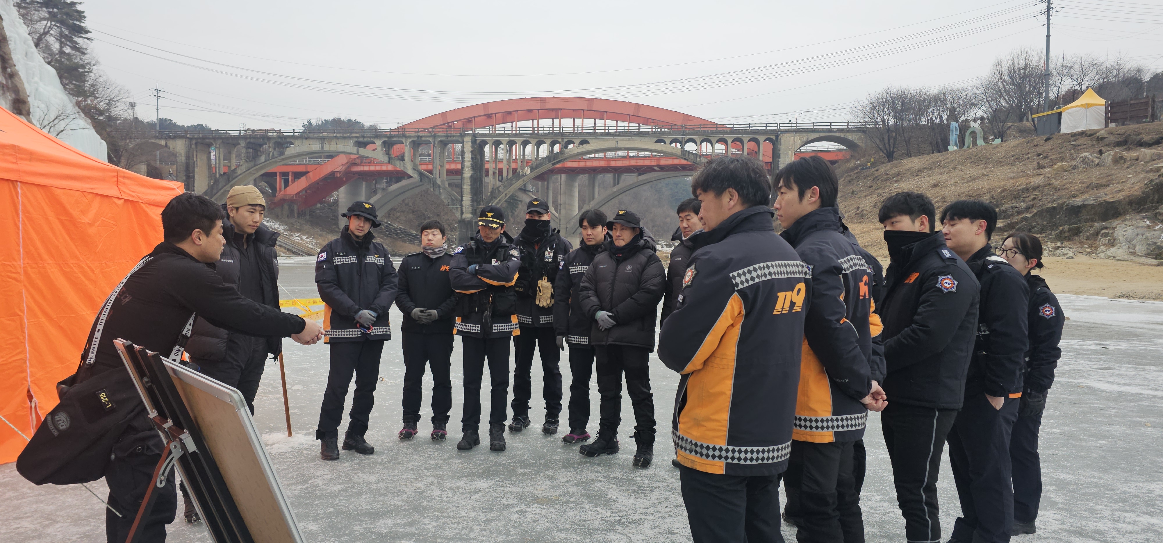 이번 훈련은 겨울철 찬물 환경에 대한 구조대원의 적응 능력을 강화하고, 빙판 익수사고 발생 시 신속하고 안전한 인명구조를 수행하기 위해 마련됐으며 특히 구조대원을 중심으로 실전 중심의 교육이 진행됐다.