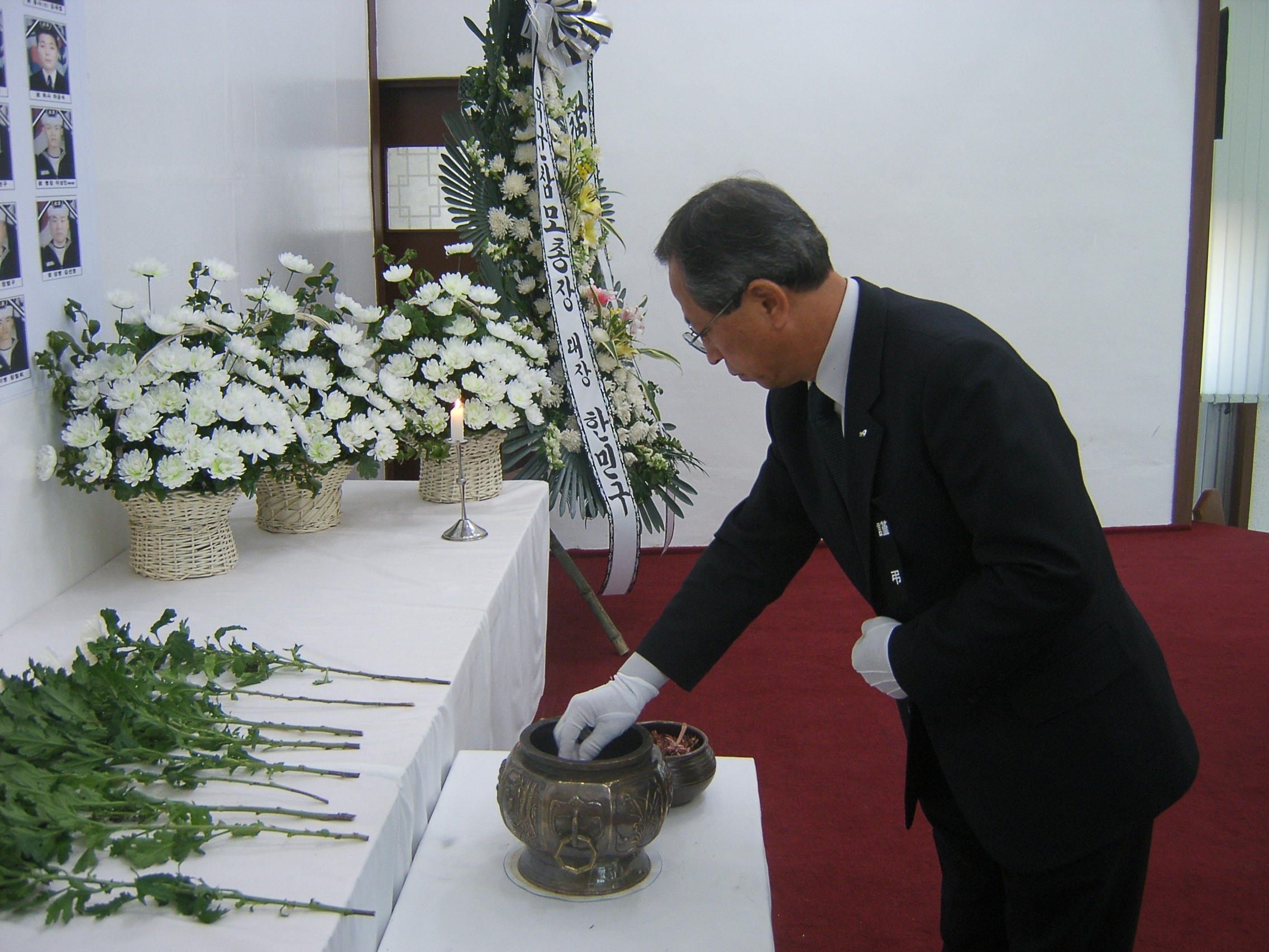 철원소방서장 김진봉은 29일 오전 9시 30분 육군3사단사령부 2층 교육관에 마련된 천안함 침몰사고 희생자 분향소를 찾아 희생 장병들의 넋을 추모하며 헌화하는 시간을 가졌다.