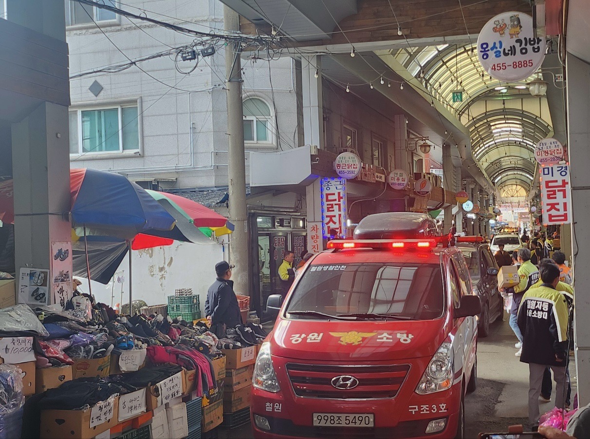 동송전통시장에서 소방차 길터주기 훈련 및 화재예방 캠페인 실시