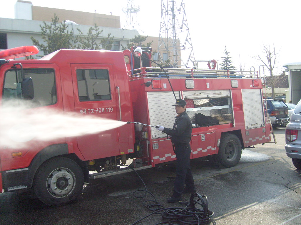 10.02.18일 오후 최복규 센터장님 외 주간근무자들은 산불진화 장비 연결 및 실제 방수 훈련을 실시하였습니다.