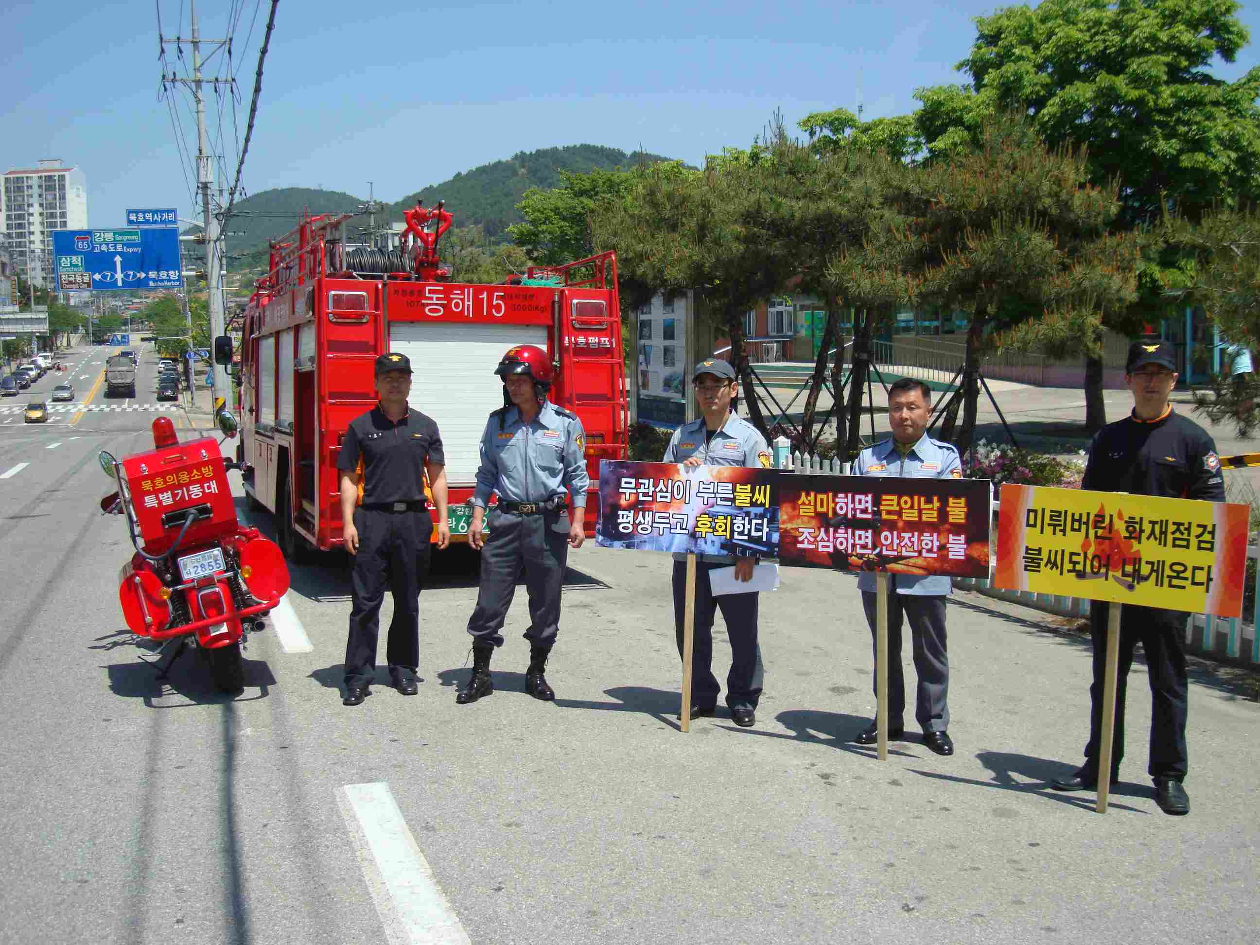 묵호119안전센터(센터장 이승원)는 5월17일(월) 묵호의용소방대원 3명과 소방이륜차 및 펌프차량 이용하여 묵호역 앞에서 산불조심 홍보 피켓이용, 주민들에 대해 산불조심 홍보를 실시하였습니다.