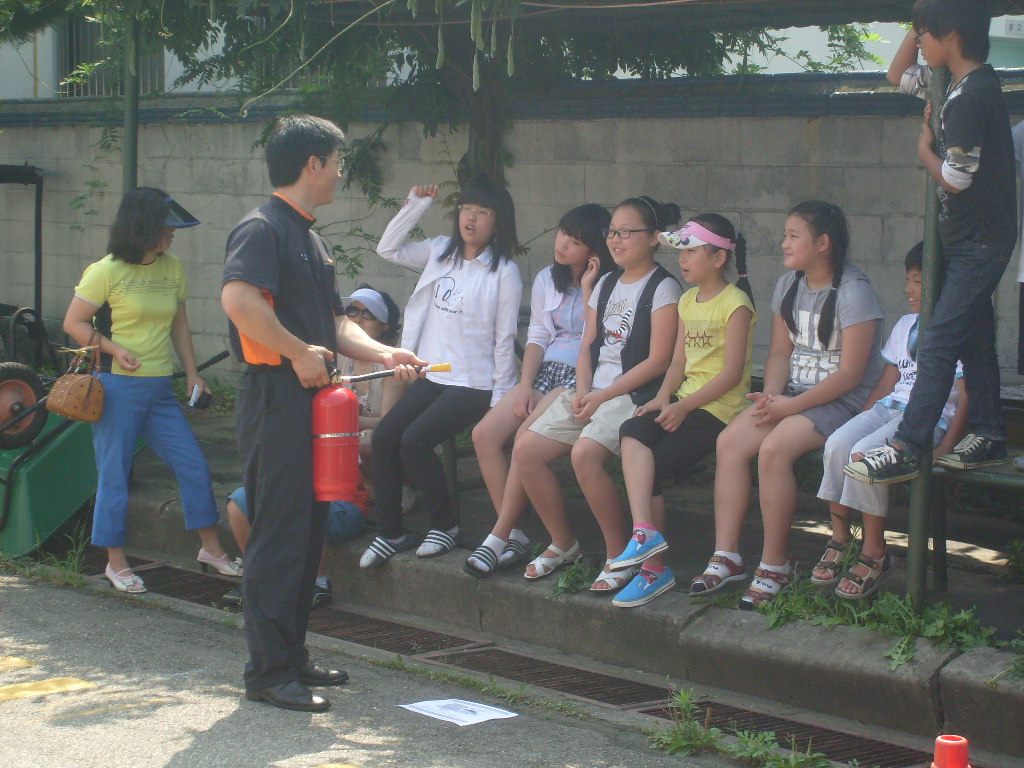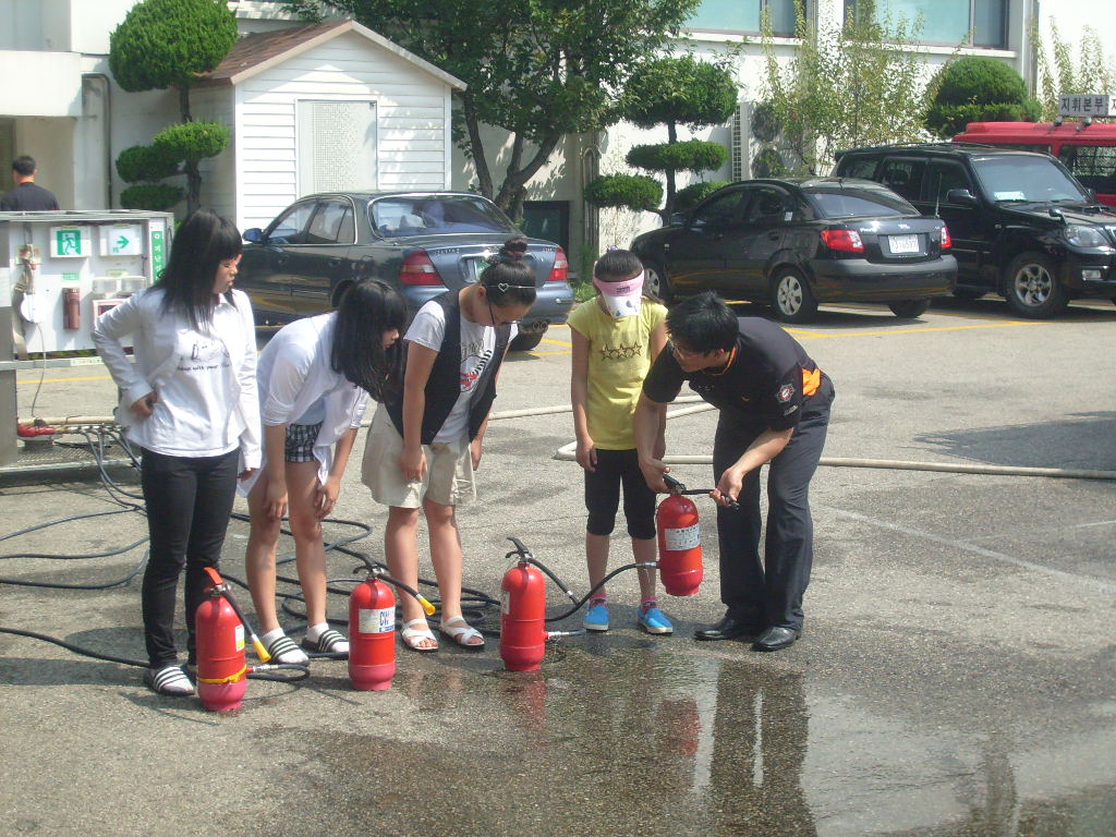 2010.7.4. 본서 후정에서 시민지역아동센터와 마중물지역아동센터의 초등학생들을 대상으로 소방안전교육을 실시했습니다.