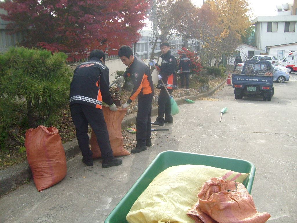 천곡119안전센터 2팀은 금요일 주간근무를 맞아 낙엽제거등 청사 환경정리를 실시하였습니다.